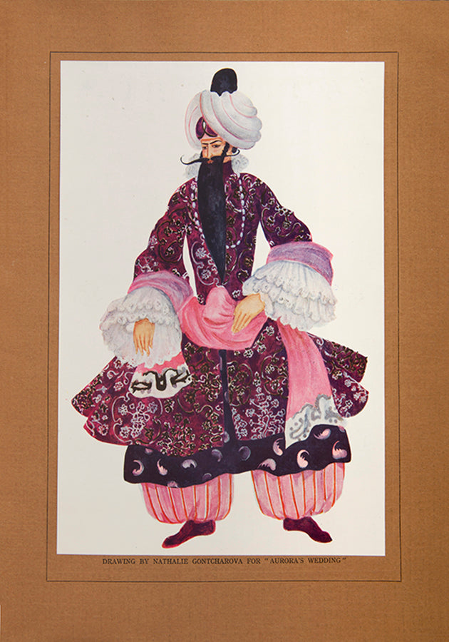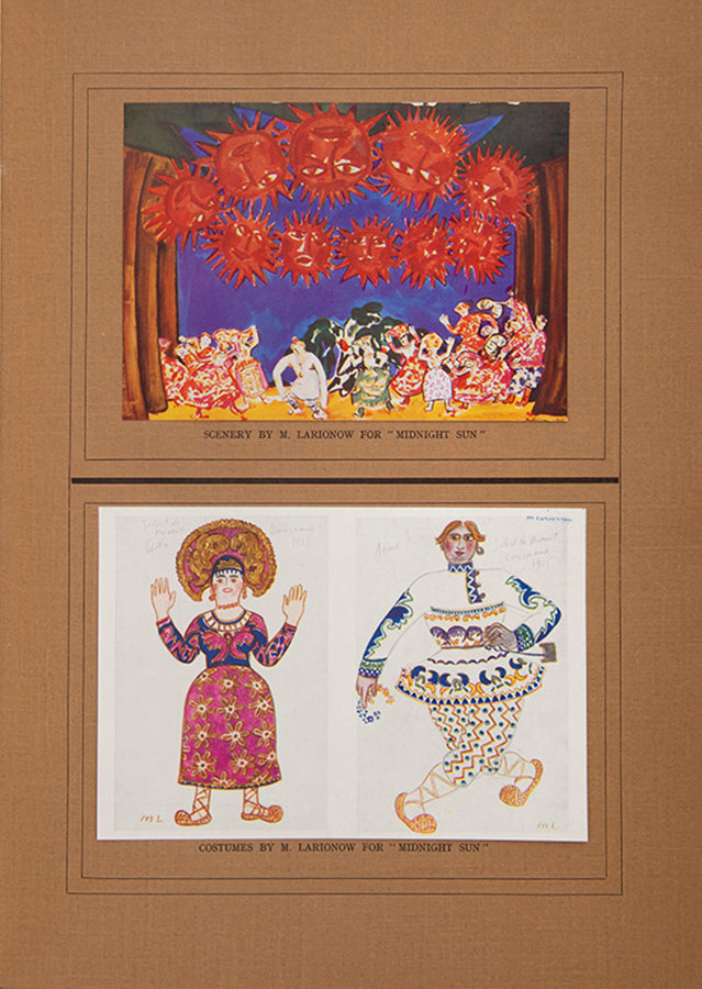 Folio (36 x 25.5 cm), tipped in colour plates after Goncharova, Larionov, Picasso, Bakst and others; original printed silver moiré with a mounted colour plate after Bilibin over plain wrappers,plate after Bilibin, some soiling and wear, a good copy.