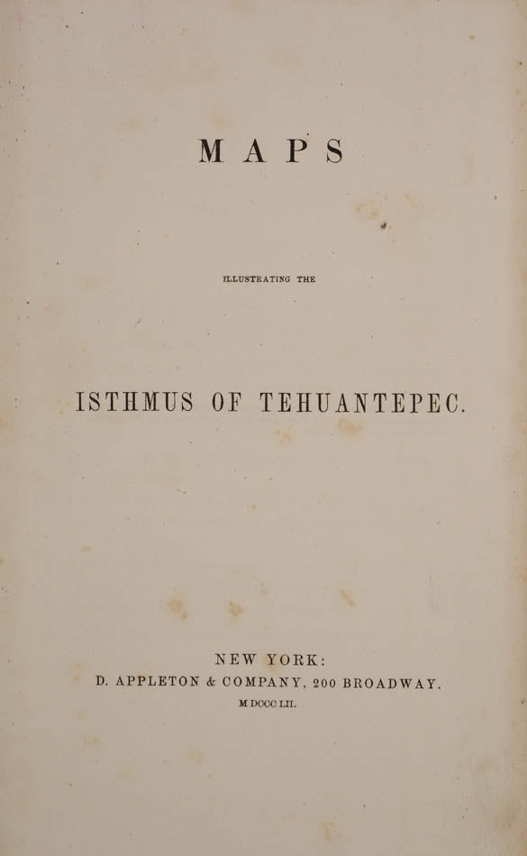 Part of the large body of interesting literature relating to schemes to build either a railway or a canal through the Isthmus of Tehuantepec. Barnard was a notable military engineer and was superintendent on the construction of the Delaware breakwater and improvements on the Hudson River and New Jersey harbours and works at the mouth of the Mississippi. His selection as chief engineer on the project proposed by the Tehuantepec Railroad Company of New Orleans came about as a result of his survey of the battlefields around Mexico City during the Mexican War.
