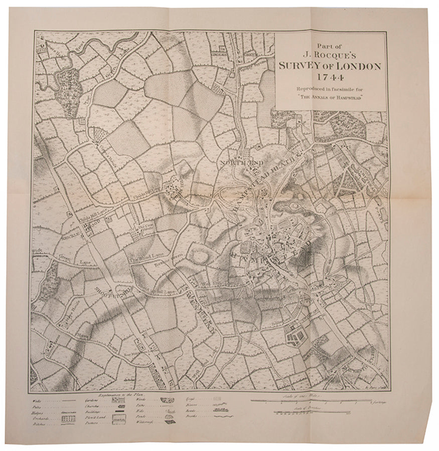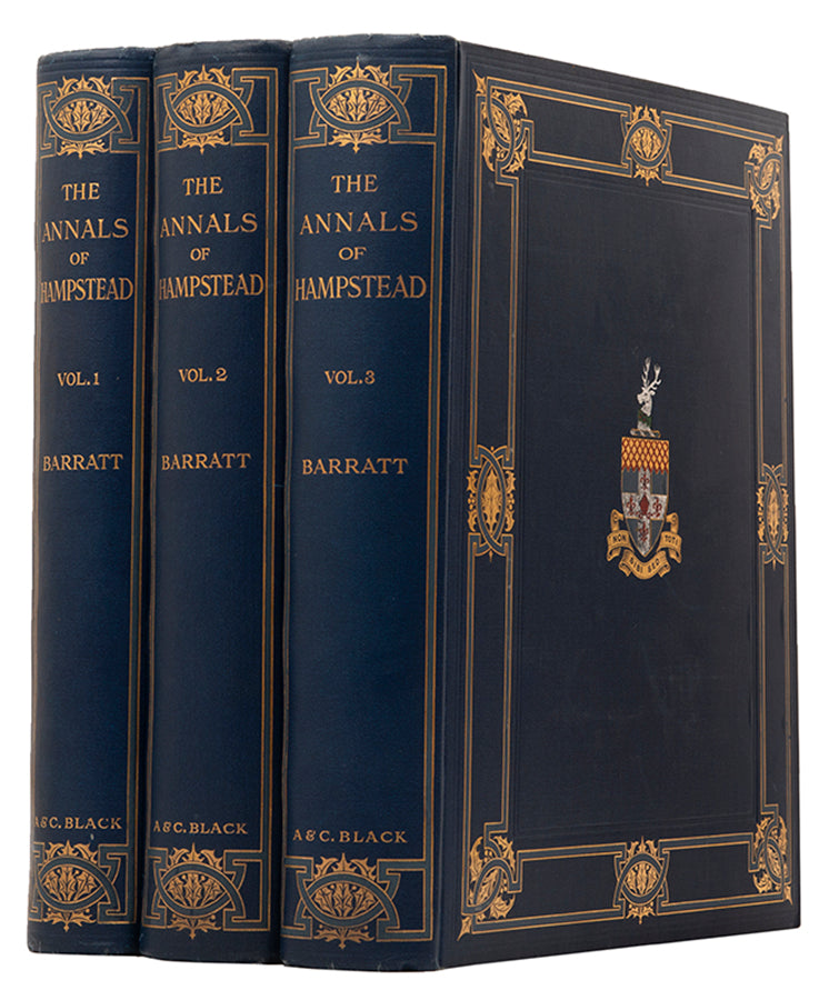 First edition, signed by the author, one of 550 copies signed; 3 vols; 4to (29 x 24 cm); over 500 illustrations, including plates (some mounted, some colour), a folding map (a facsimile of Rocque's 1744 Survey of London), plans, and textual figures, titled tissue guards, light spotting to endpapers, leaves slightly toned; publisher's blue cloth, armorial device and gilt stamped ornamental border to front covers, gilt lettering to spines, all edges gilt, rubbing to spine ends and corners. A very good set.