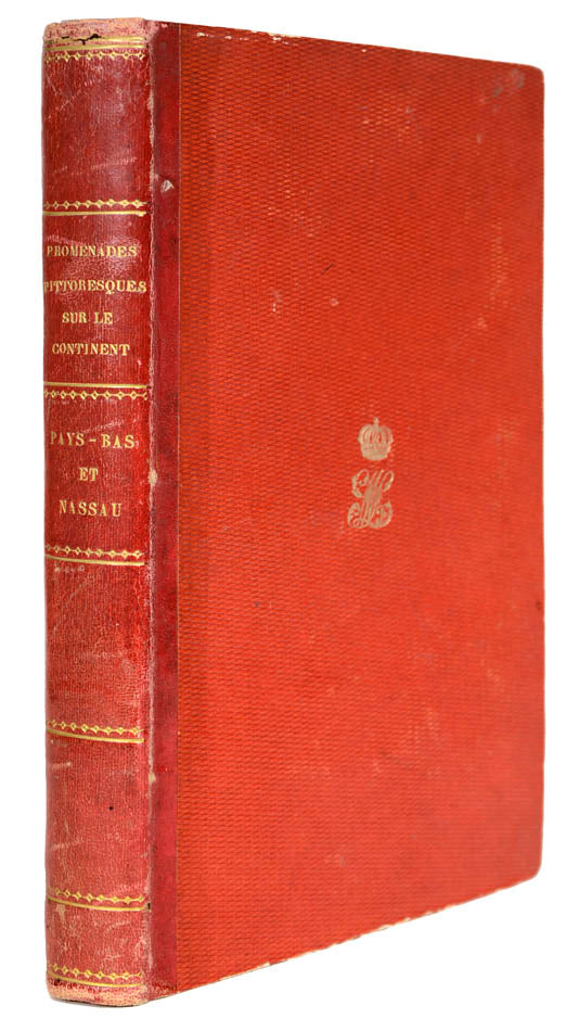8vo. Additional engraved title in English, 60 engraved plates with tissue guards, 2 folding engraved plans; slight foxing to additional title, early ff. and occasional margins, mild age-toning to folding plans, contemporary sheep-backed boards with gilt crest on covers; edge wear, tear near head of spine.