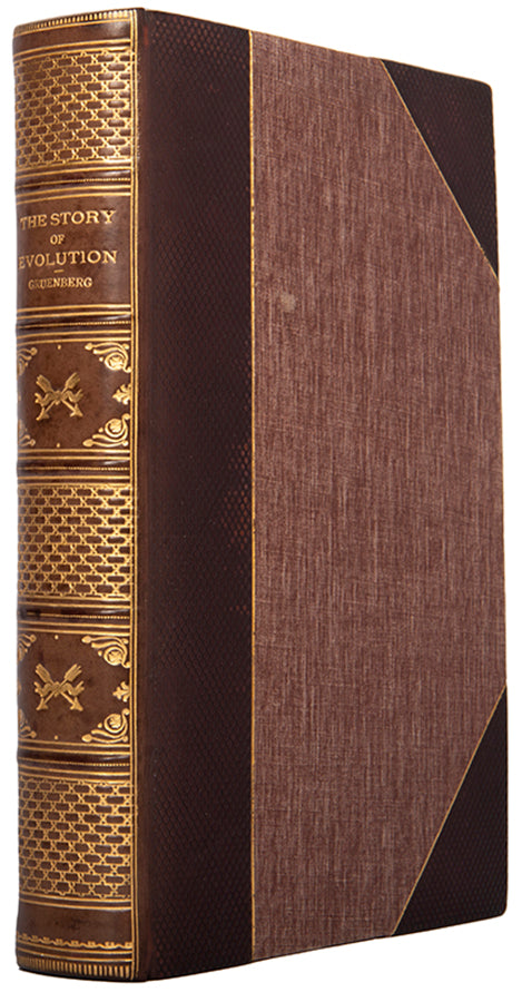 First UK edition of this uncommon evolutionary biology textbook, published in the same year as the US edition. Handsomely bound in diced calf for Harrow School.Benjamin Gruenberg was born in 1875 in what is now Novoselytsia, Ukraine, and after emigrating to the United States he earned his PhD at Columbia University under genetics pioneer Thomas Hunt Morgan. Gruenberg worked as a teacher in New York City schools from 1902 onwards, and was largely responsible for introducing the study of modern evolutionary biology and genetics, as opposed to descriptive natural history, into the education system. His prominence was so great that he was asked by Clarence Darrow to testify at the Scopes trial, but was advised to refuse by his publisher. He was also a proponent of modern sex education, writing a number of books on both subjects. After his death in 1965 the journal Science Education eulogised him thus: 'Few, if any science educators have had a greater impact on science education. He may aptly be described as a giant among American science teachers' (Pruitt, Benjamin Charles Gruenberg 1875-1965, Science Education, February 1966).