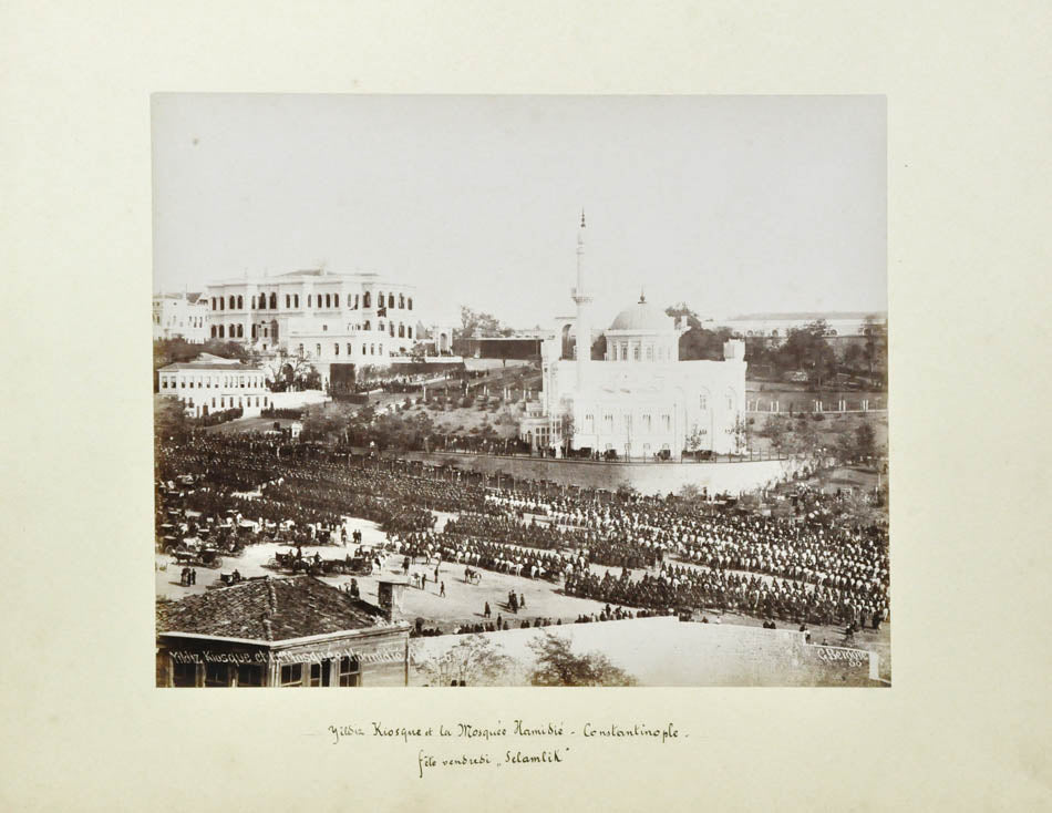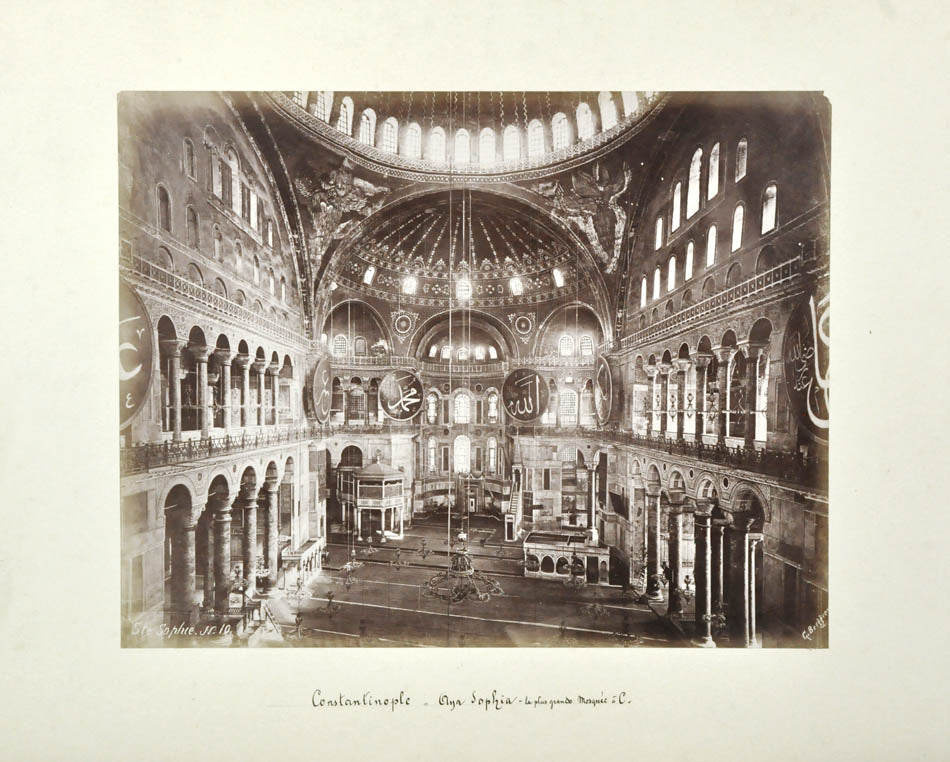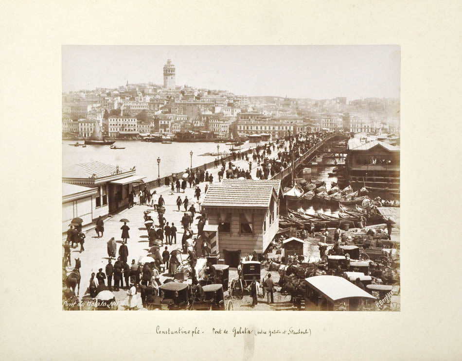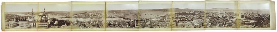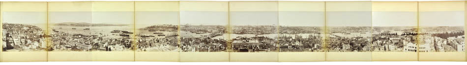 Two large folding panoramas of Istanbul in 8 and 10 parts respectively, 2 parts panorama of Athens, 18 albumen prints, including 13 of Istanbul. 14 photographs including panoramas bear photographer's credit. Dimensions: panoramas app. 32 x 260 cm, photographs app. 22 x 28 cm.
