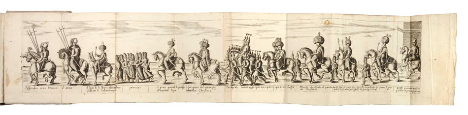 Rare. The first part includes 24 Greek and Turkish plates. The second part includes the fine Turkish processional panorama, 69.5 x 13.75 cm. A third part consisting of Italian subjects was issued later.