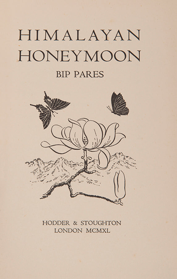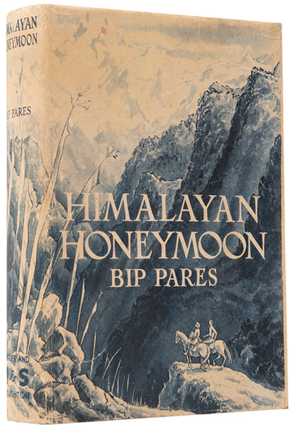 Ethel "Bip" Pares (27 February 1904 – January 1977) was an Art Deco illustrator and well known for designing London Transport Posters and detective novel jackets. She also designed jackets for Eric Shipton's mountaineering books. Her work is now very collectible. This unusual book tells the story of her honeymoon trekking through the Himalayas with Tilman's 1938 Everest Expedition. It is filled with her own blue-tinted attractive sketches.