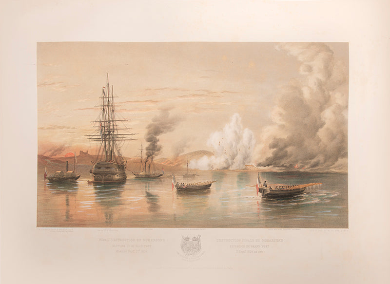 First edition; large folio (74x 54 cm); engraved dedication, 2pp. letterpress descriptive list of plates, 18 lithographic plates on 15 sheets coloured by a contemporary hand, no title issued, spotting to first plate, some minor staining to top margin; later dark blue half morocco, label to upper cover, corners bumped, binding a little worn, preserving one original wrapper bound in as title, a very good copy.