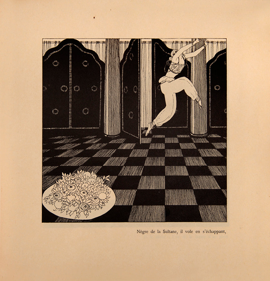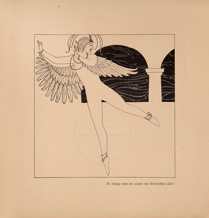 Iribe was a French designer and fashion illustrator who for a while was a member of the Ballets Russes circle, hence these depictions of the troupe's most celebrated dancer. Nijinsky is shown here dancing in the ballets Giselle and Scheherazade. The poet, Jean Cocteau was keen to have his work associated with that of the Ballets Russes in the hope that Serge Diaghilev would in turn want to collaborate with him.Limited edition, one of 999 copies, on papier japon; 4to (30.7 x 30.1 cm); 6 plates by Paul Iribe each with verse by Jean Cocteau; original printed wrappers, replacement black cord tie, some staining to lower cover, a very good copy.