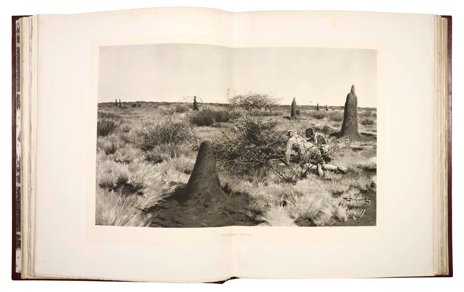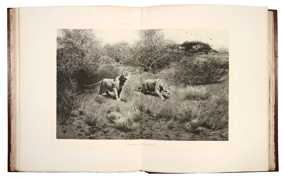 First English edition, limited to 200 numbered copies signed by Rowland Ward, Imperial 4to. (40 x 32 cm. approx.), vii, 140 pp., coloured portrait frontispiece, 18 photogravure plates (5 double-page), 58 coloured, and 7 monochrome illustrations in text after Piotr Stachiewicz, coloured folding map, fine modern full red morocco gilt with pictorial gilt block to upper cover to the same design as the original, original Rowland Ward "snakeskin" end-papers, top edge gilt others uncut, a fine example.