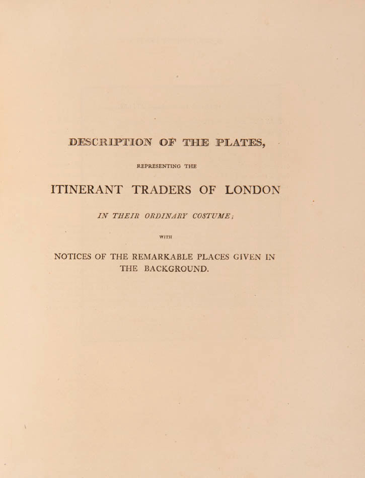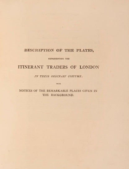 Description of the Plates, Representing the Itinerant Traders of London in their Ordinary Costume; with Notices of the Remarkable Places Given in the Background.