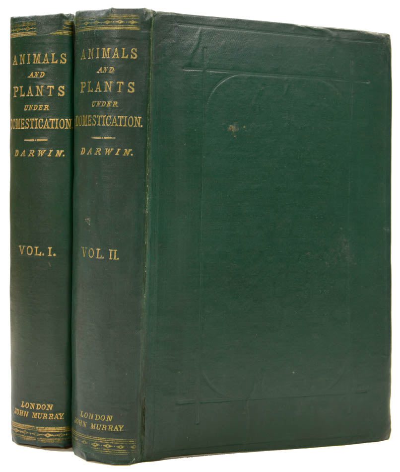 First edition, second issue of the work in which the phrase 'survival of the fittest' appeared for the first time.The Variation of Animals and Plants Under Domestication was 'the only section of Darwin's big book on the origin of species which was printed in his lifetime and corresponds to the first two intended chapters' (Freeman p. 122). 'With detailed facts and lengthy discussion, the work includes what Darwin believed to be new ideas of pangenesis, but the topics of sexual selection and human evolution were excluded from these already thick volumes. Despite their size, the works sold briskly (Desmond & Moore, Darwin, p.550).