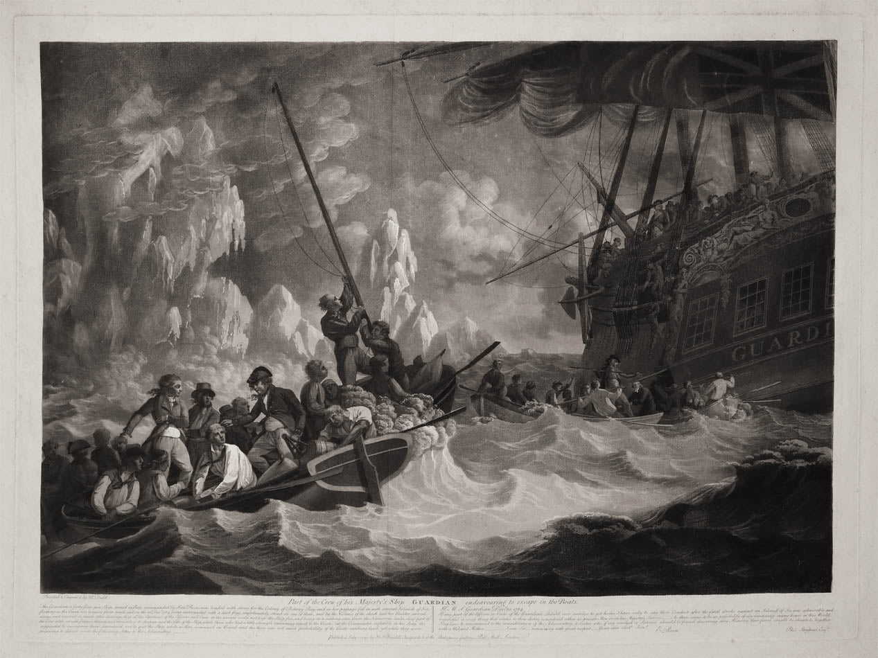 Robert Dodd (1748-1816) was a marine painter, known for his depictions of the French Revolutionary Wars. His most well-known work showed Captain Bligh being cast adrift from the Bounty following the Mutiny in 1789, the same year as the wreck of the Guardian.