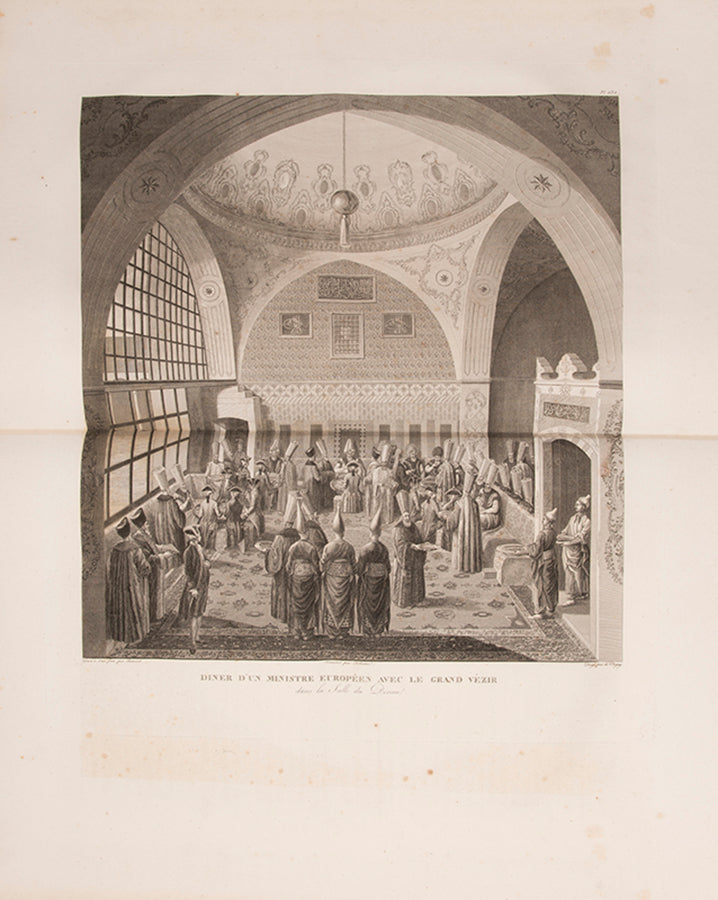 Mouradja d'Ohsson (1740-1807) was born at Constantinople of Armenian descent. He followed a career there with the Swedish legation, eventually becoming charge d'affaires in 1782. He spent many years assembling the materials for this work and in 1784 went to Paris to prepare for its publication. The Tableau général soon became established as a fundamental source of information for the laws, constitution and history of the Ottoman Empire. In addition to the topographical scenes, many of the plates illustrate the costumes of the Ottoman court officials and others.