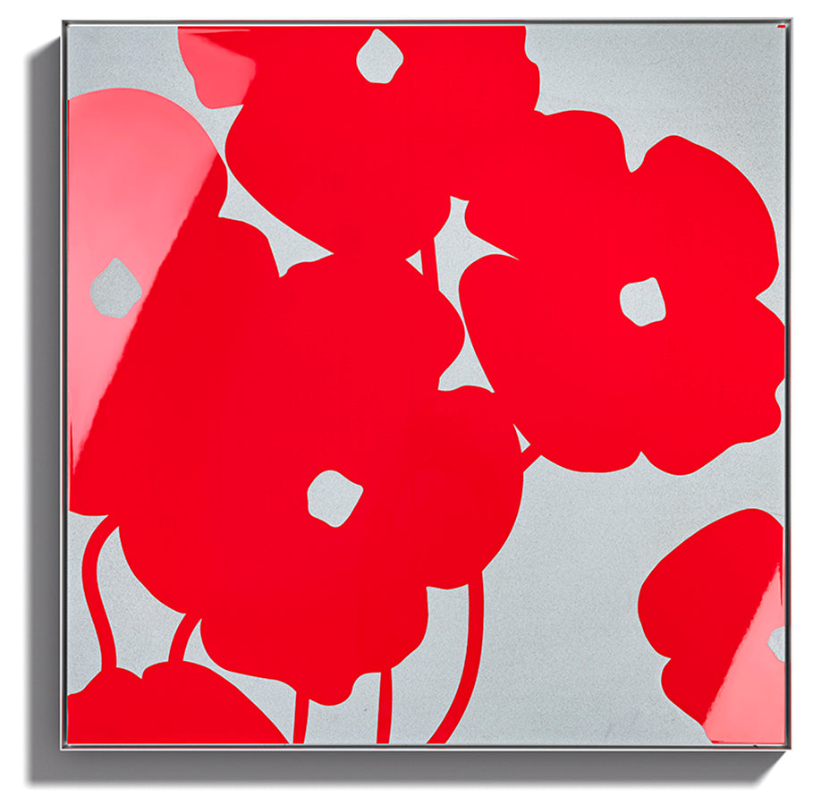 Poppies in Cement revisits Sultan's studio practice, incorporating industrial materials into the art of edition making – offering a contrast of glossy automotive paint with a textured, cement overlay across five different colourways.