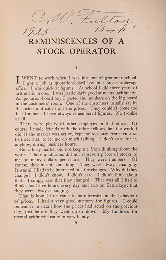 One of the greatest works on market speculation. To the hedge fund expert Jack Schwager it is 'One of the most highly regarded financial books ever written'. Ken Fisher says 'After 20 years and many re-reads, Reminiscences is still one of my all time favourites', and Barton Biggs considered it 'The classic work about intuitive trading. No investor's education is complete without it'.