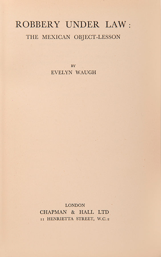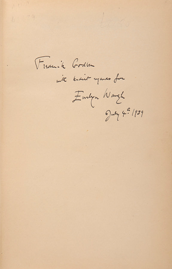 Presentation copy. Presentation copy, inscribed by the author in black ink to the front free endpaper, 'Frederick Godber, with kindest regards from Evelyn Waugh July 4th 1939'.