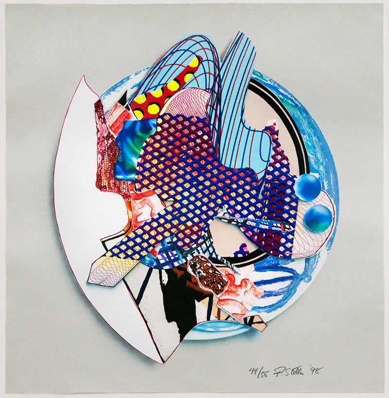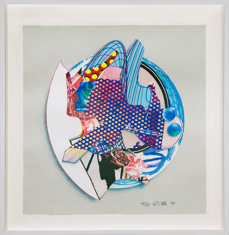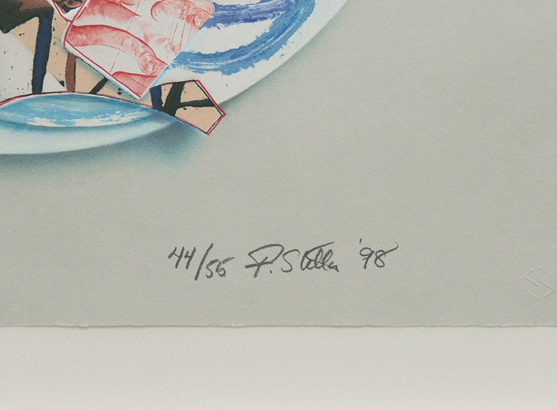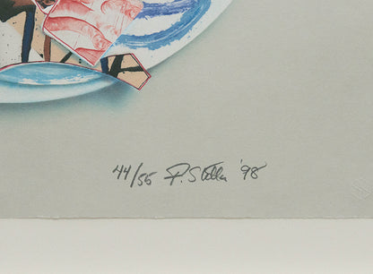 The physicality of the works are as inventive and creative as the titles of the series itself. Appearing almost like a psychedelic spectrum, the imagery is deceptively random, in fact Stella constructs a composition that is tight and coherent, showing off his sophisticated design aesthetic and use of printing techniques.
