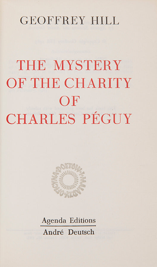 One of 100 copies - signed and inscribed by the author. A superb association copy with the author's signed presentation inscription to his publisher, 'Tom Rosenthal with good wishes Geoffrey Hill 14 March 1987'. Rosenthal was the owner and chairman of Andre Deutsch.