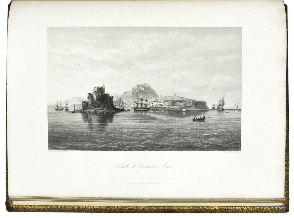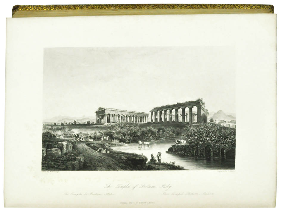 2 volumes in 1, 4to., 2 engraved vignettes, 71 engraved plates, contemporary calf gilt, covers with wide gilt borders, red morocco lettering piece, spine lightly rubbed, all edges gilt, plates clean, a very good copy.