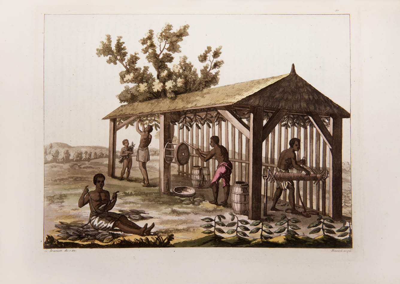 First edition (Italian text version); 14 vols bound in 18 [with] 4 supplementary vols, 22 in total; large 4to; illustrated with 6 large folding maps, 1640 aquatint plates, of which 1517 are hand-coloured, various tables, etc., portrait of Francis I replaced with an emblematic portrait of 'Terra', occasional short closed tears (not affecting plates), scattered light foxing, plates slightly toned, 2 vols heavily toned; contemporary vellum-backed maroon boards, red and green morocco spine labels with gilt lettering, a very good set.