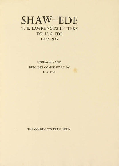 T.E. Lawrence's Letters To H.S. Ede 1927-1935.