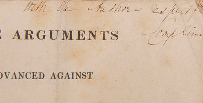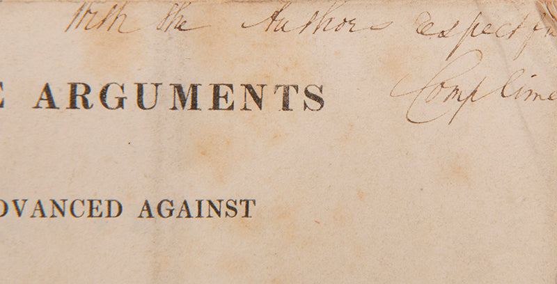 The 'State cannot without injustice deprive any class or classes of loyal and useful subjects, of the privileges which are enjoyed by the rest' (p.31). An uncommon book, OCLC lists only 16 copies in institutional collections. Not in the British Library.