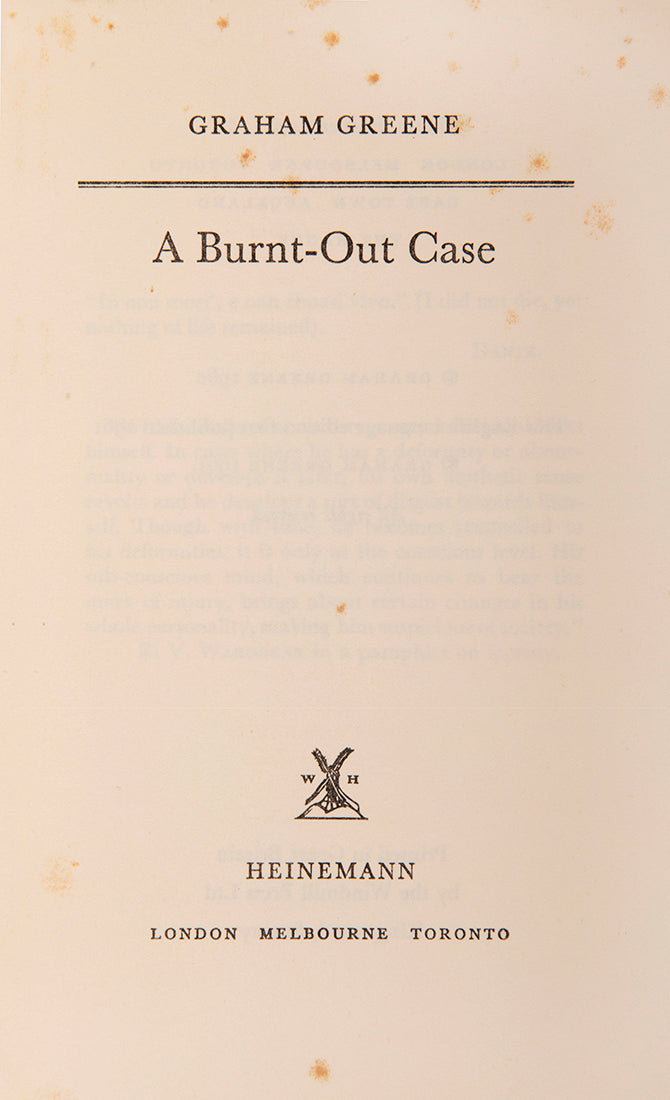 A major literary association copy with the author's signed presentation inscription to the front free endpaper, 'For Paul Gallico- arrears for.......from Graham Greene'. One of Greene's 'big three' middle period titles after Our Man in Havana and The Quiet American, all three of which are rather uncommon in inscribed states. The present example - to a fellow novelist and thus a literary association is one the best we have seen.