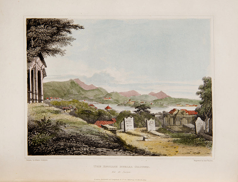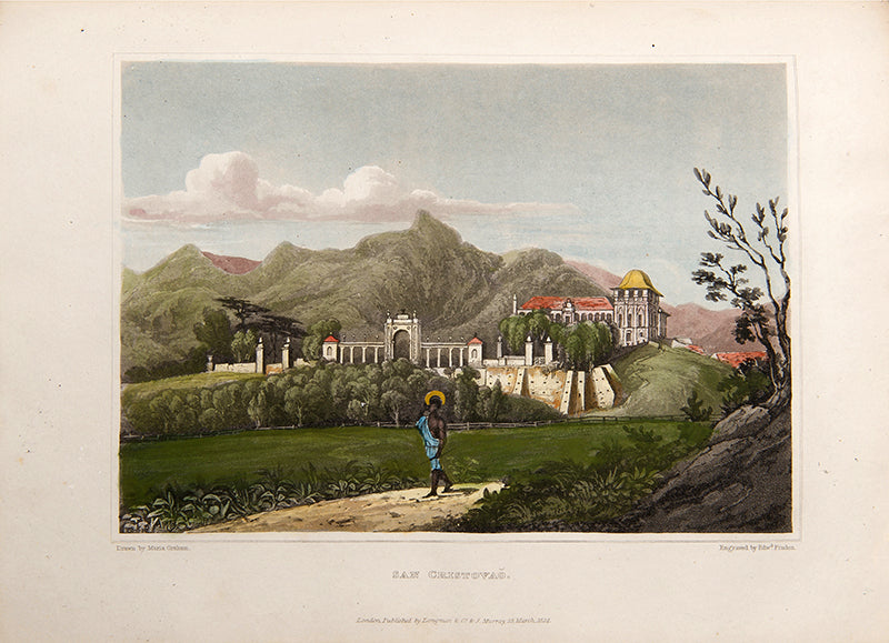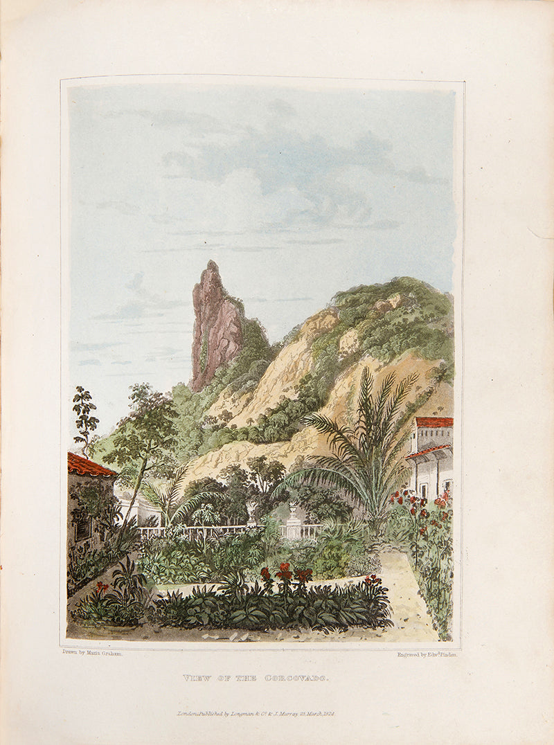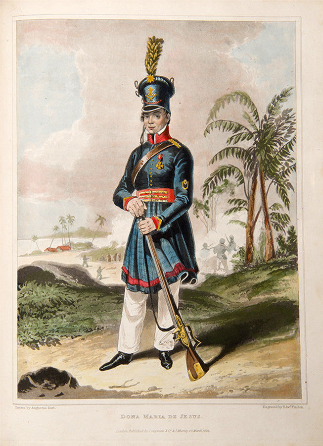 Graham was an accomplished painter, moving in the same circles as Constable and Turner, and took for her second husband the landscape painter Sir Augustus Wall Callcott. She drew most of the plates in this work herself, mixing landscapes with views of Brazilian slave markets, and dedicated a section to Maria Quitéria, a national heroine who disguised herself in soldier's clothes to fight in the war of independence, for whom the engraving in this work remains the standard depiction.