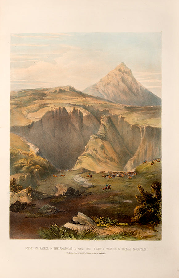 First edition; folio (53.5 x 36 cm approx.); letterpress title, 1 page explanatory text, 21 hand-coloured lithographed plates on 18 leaves after sketches by the authors; original upper wrapper bound in at end, later red half morocco gilt for Sawyer of Grafton Street, slipcase, light discolouration to covers else a fine clean copy.
