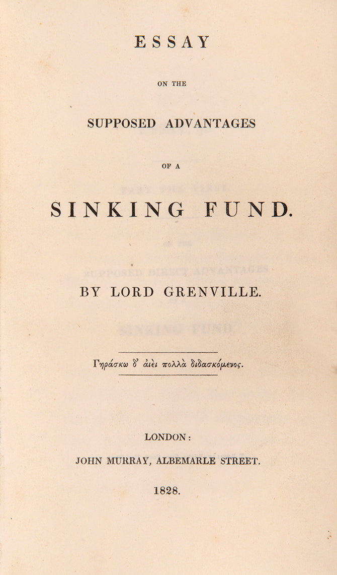 presentation copy from Lord Grenville to Henry W. Wynn; [bound after] GRENVILLE, Lord. Essay on the Supposed Advantages of a Sinking Fund.