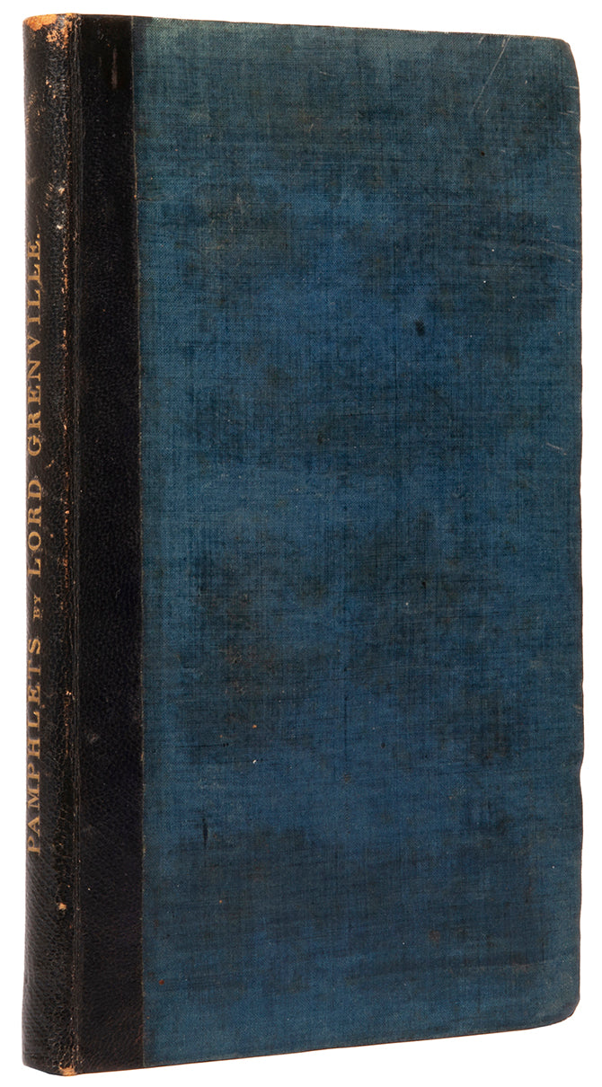 Scarce, only in 12 libraries worldwide and not in Cambridge or Oxford. Not ascribed to Lord Grenville (1759-1834) in the BL catalogue but the present inscription, along with being bound with another work by Grenville, strongly implies the work is by him.