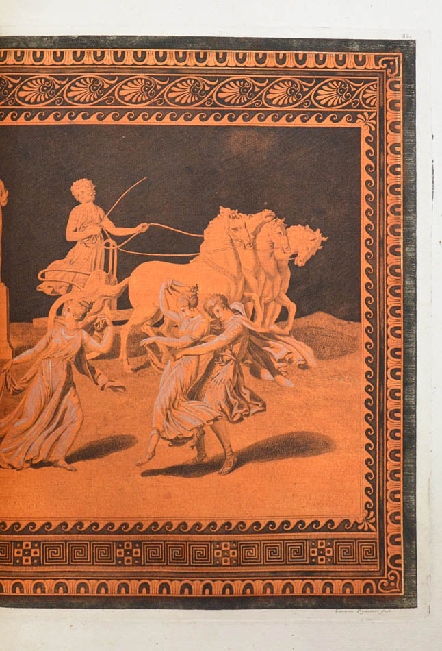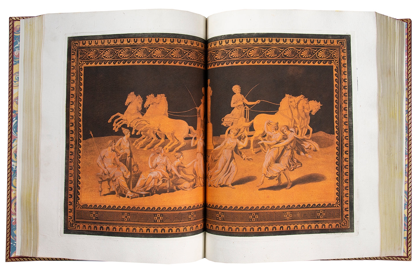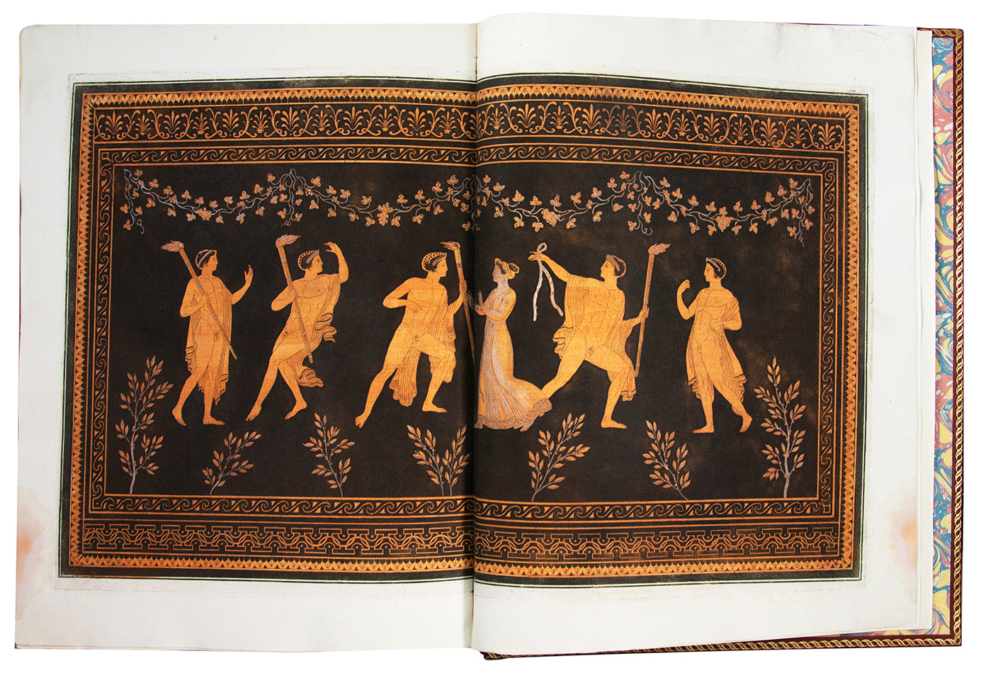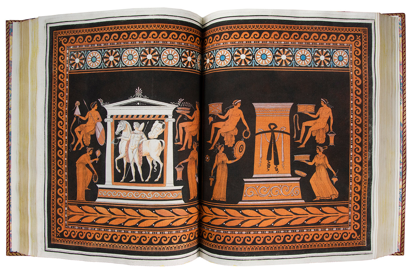 The collection was assembled by Hamilton after his appointment to the court of Naples in 1764. Pierre François Hugues, an authority on ancient art, had introduced Hamilton to the Porcinari family, the owners of a large collection of ancient classical vases which Hamilton bought and enlarged, and then sold to the British Museum in 1772. Before their shipment of England, all the objects were listed, drawn and described under the supervision of the brilliant but unscrupulous 'baron' The work was finely illustrated with hand-coloured engraved plates whose 'influence on neo-classical design and taste was to be profound' (Dictionary of Art). One of the explicit aims of the work was to discover the proportions of ancient vases in order to aid in their true reproduction, and indeed its influence on Josiah Wedgewood was significant. With the first two volumes issued, publication was then interrupted by Hugues' expulsion from Naples, apparently for debt, and Hamilton had to overcome the difficulty of finding his copper-plates in the hands of creditors. The last two volumes did not appear before 1776. Although Blackmer states that the edition was of 500 copies, it appears that only 100 copies of the two later volumes were issued (cf. I. Jenkins and K. Sloan Vases and Volcanoes, 1996, p. 49), and this, together with the long gap in publication, accounts for the relatively high number of incomplete set