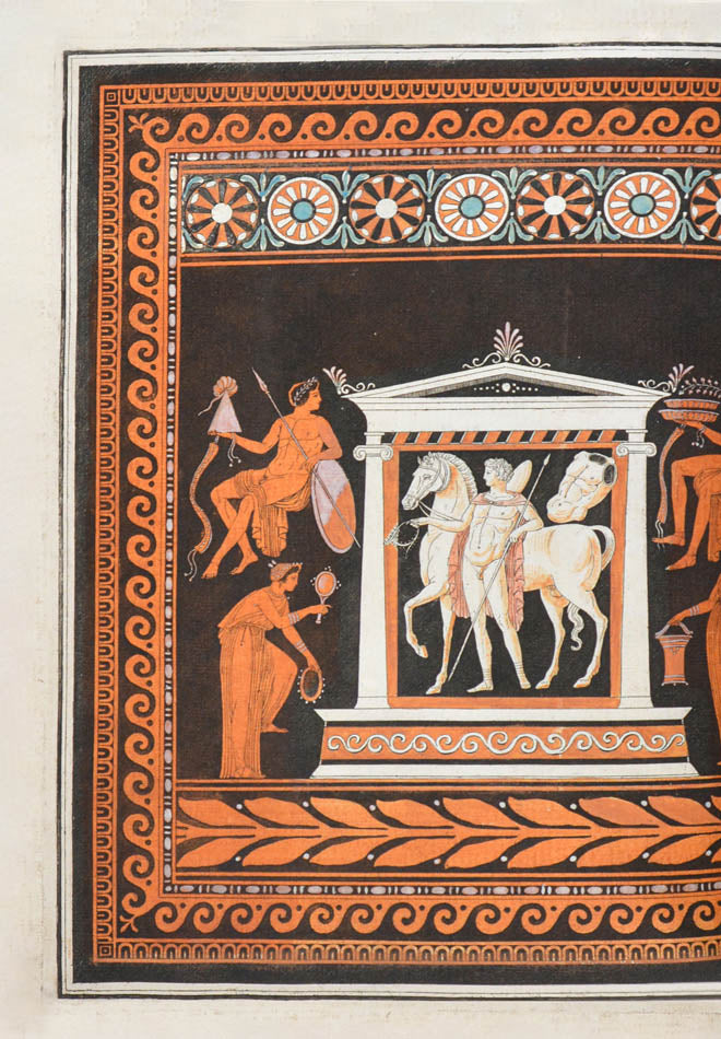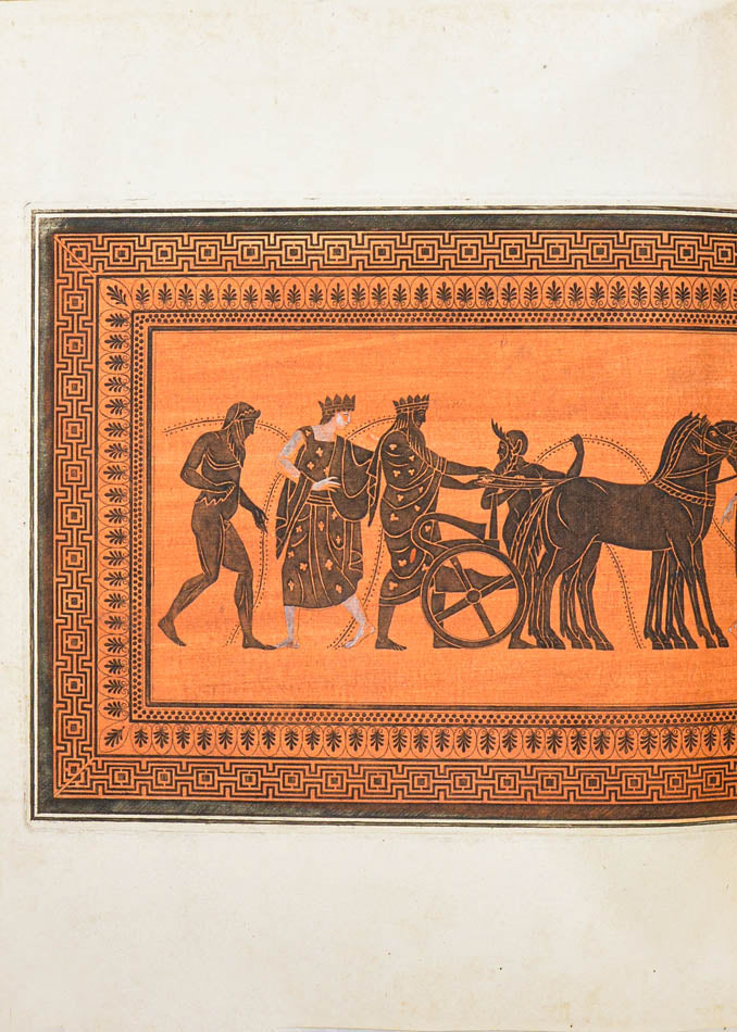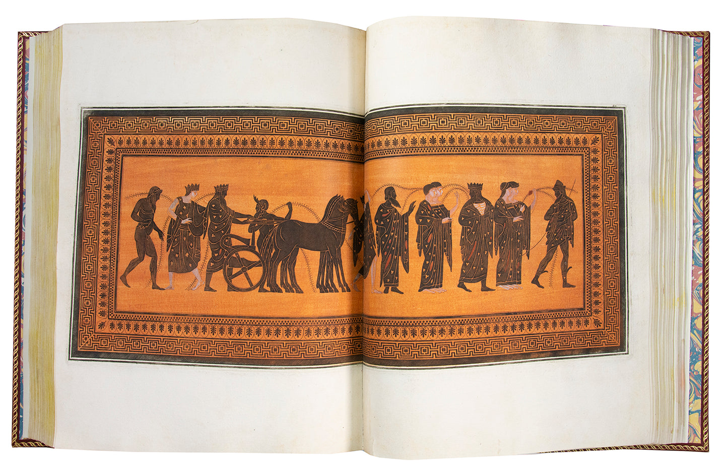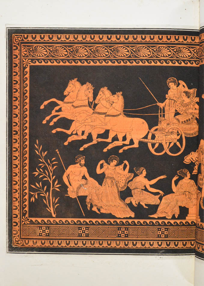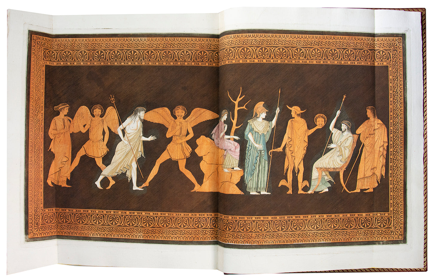 The collection was assembled by Hamilton after his appointment to the court of Naples in 1764. Pierre François Hugues, an authority on ancient art, had introduced Hamilton to the Porcinari family, the owners of a large collection of ancient classical vases which Hamilton bought and enlarged, and then sold to the British Museum in 1772. Before their shipment of England, all the objects were listed, drawn and described under the supervision of the brilliant but unscrupulous 'baron' The work was finely illustrated with hand-coloured engraved plates whose 'influence on neo-classical design and taste was to be profound' (Dictionary of Art). One of the explicit aims of the work was to discover the proportions of ancient vases in order to aid in their true reproduction, and indeed its influence on Josiah Wedgewood was significant. With the first two volumes issued, publication was then interrupted by Hugues' expulsion from Naples, apparently for debt, and Hamilton had to overcome the difficulty of finding his copper-plates in the hands of creditors. The last two volumes did not appear before 1776. Although Blackmer states that the edition was of 500 copies, it appears that only 100 copies of the two later volumes were issued (cf. I. Jenkins and K. Sloan Vases and Volcanoes, 1996, p. 49), and this, together with the long gap in publication, accounts for the relatively high number of incomplete set
