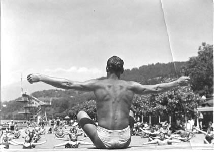 Gelatin silver print. Dimensions: 175 by 125mm. (7 by 5 inches). Large vertical crease to the right of centre, right margin slightly chipped.