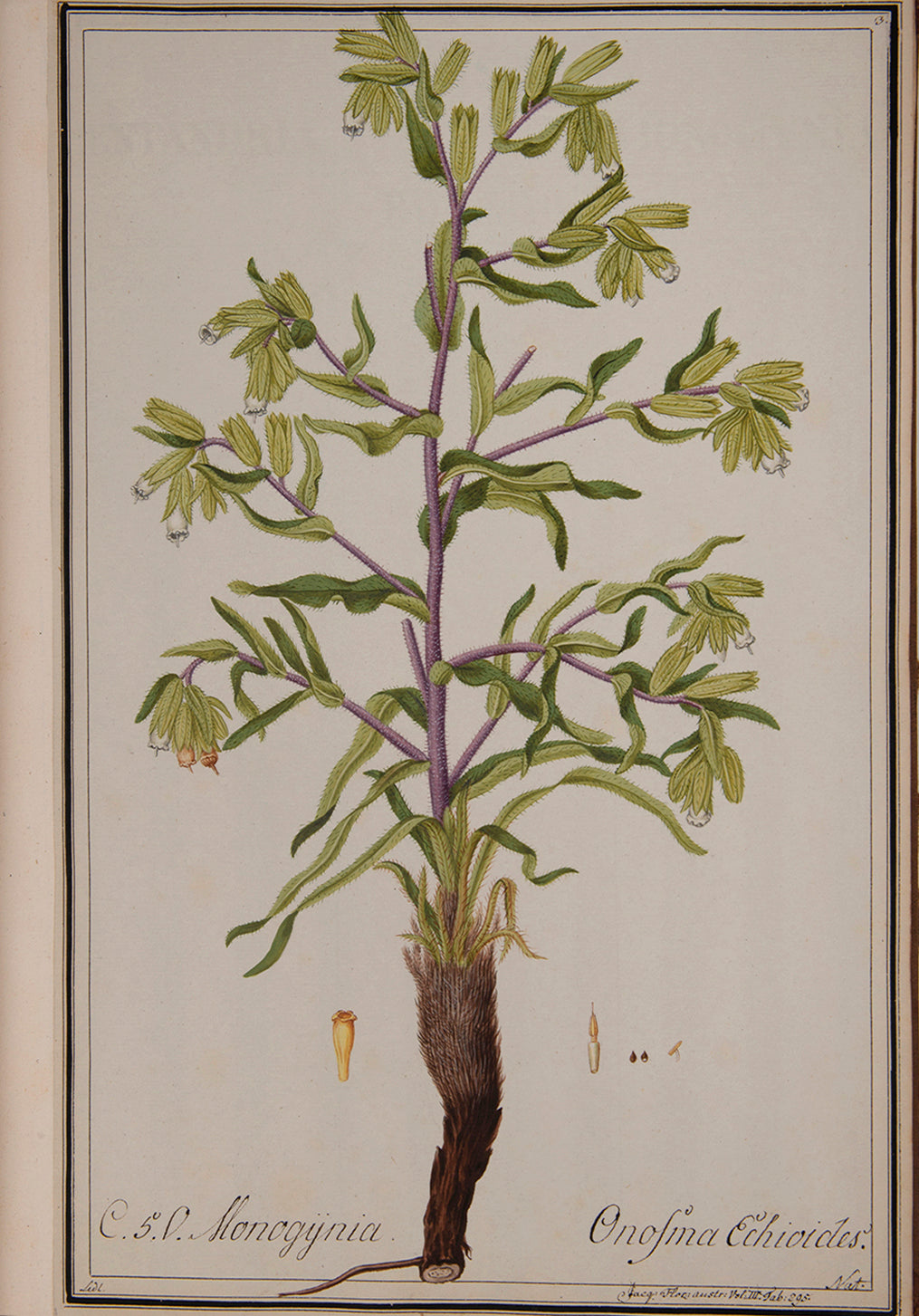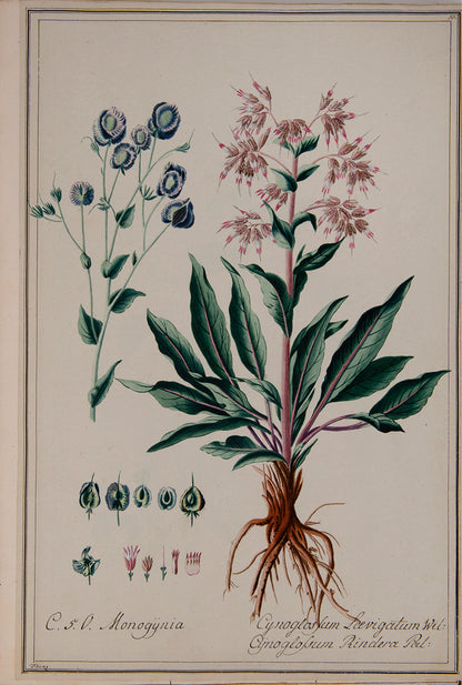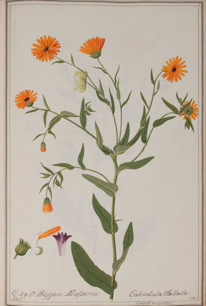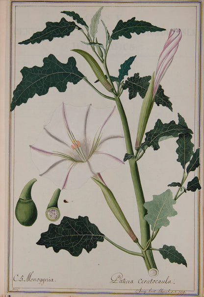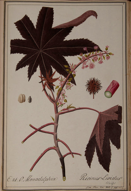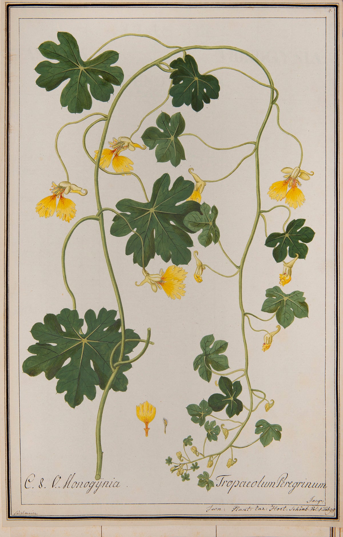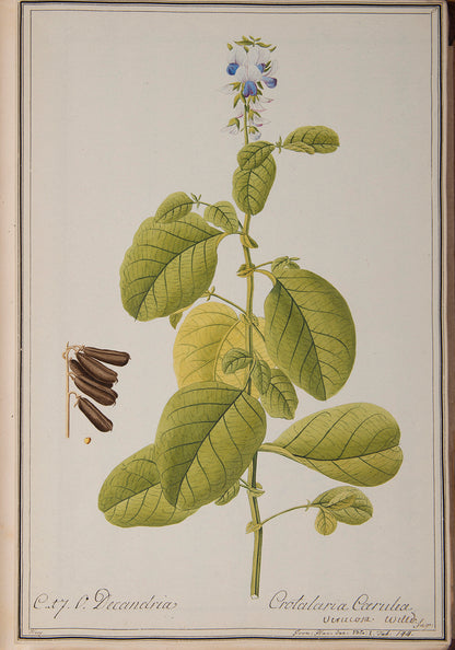 The fine watercolour drawings all contain the details of their sources, with the name of the original artist in the lower left corner and the printed source in the lower right hand corner; a few also have manuscript notes on the verso indicating if, for example, the seed pods are not shown. The artist of these exceptional drawings is unknown.