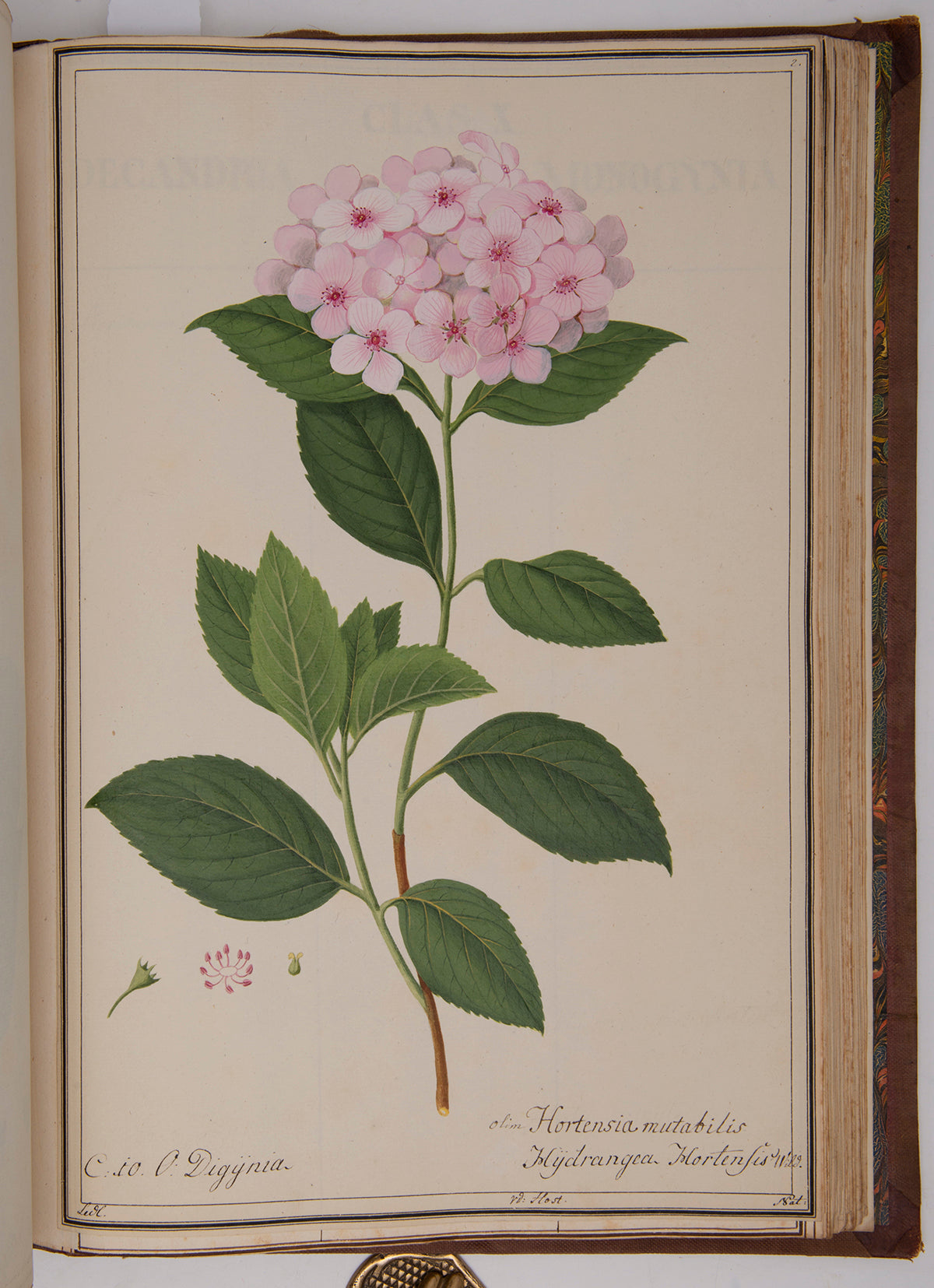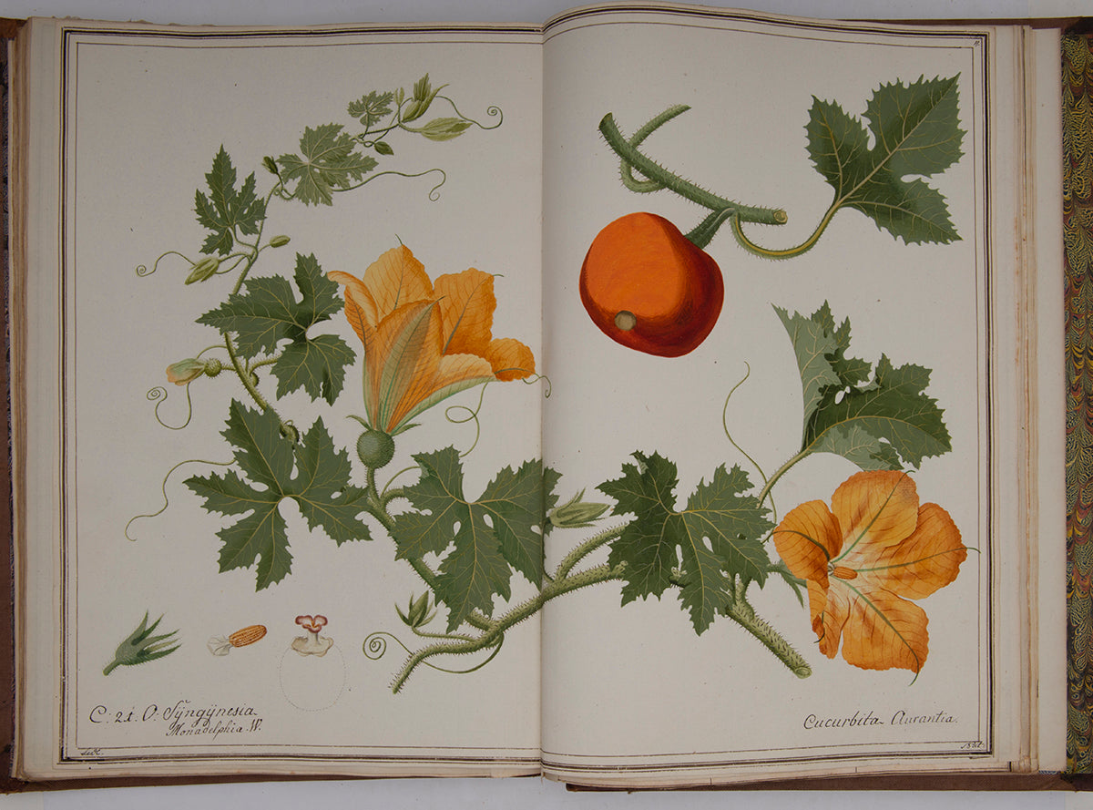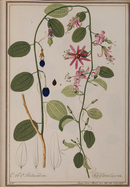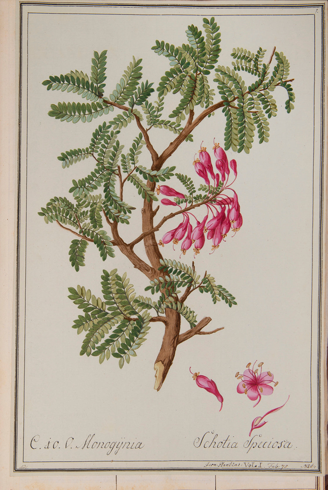 17 vols (from a set of 33, volumes numbered 3, 5, 6, 8, 11, 12, 14, 18, 20-22, 24-26, 28, 29, 33), folio (430 x 301mm.), a total of 1983 watercolour botanical drawings, some drawings double-page, some plates on shorter paper with extended margins, manuscript contents page at the start of each genus with the reference to Willdenow's edition of Series plantarum (whose publication dates between 1797 and 1805 are noted in the top left-hand corner, with the entry number from Willdenow given in the top right), contemporary quarter morocco over cloth boards bound by E.L. Geyer of Vienna (with tickets), flat spines elaborately gilt, leaves uncut, marbled endpapers, some light foxing at margins (not affecting illustrations), spines and boards lightly discoloured, extremities rubbed TBC