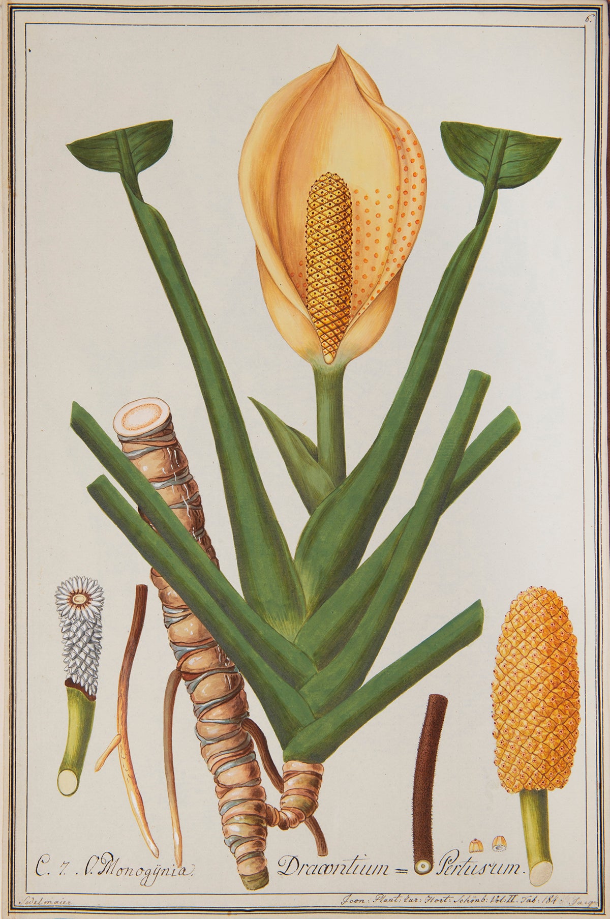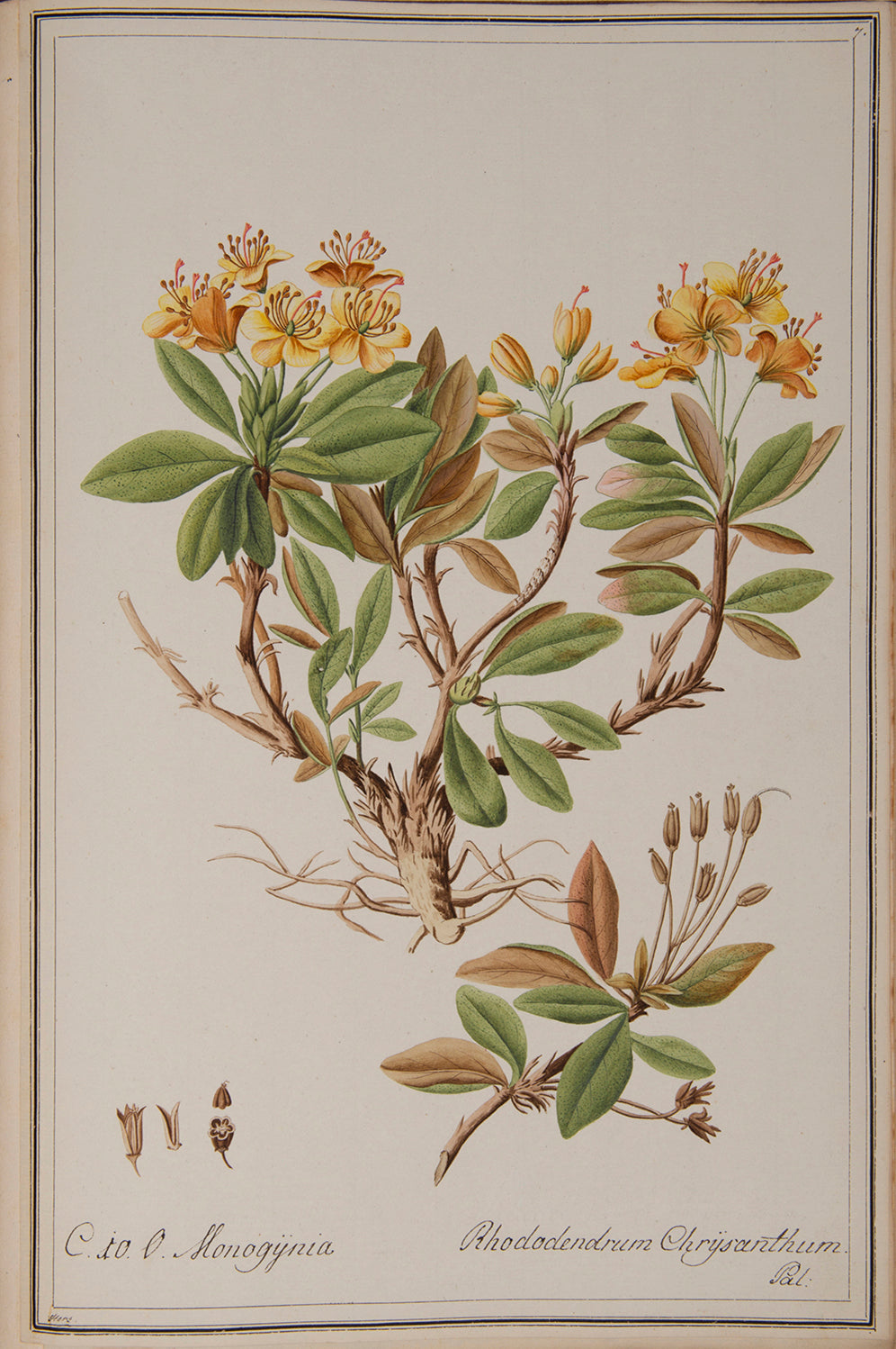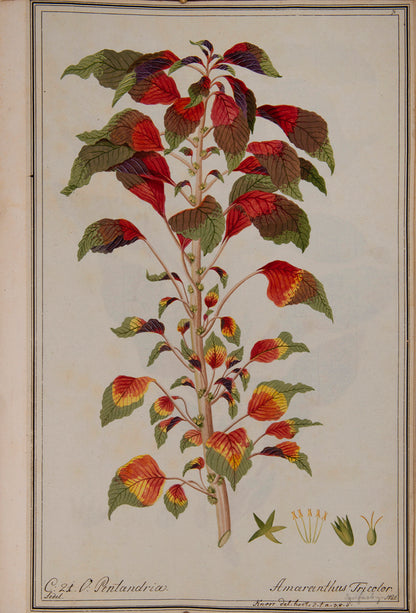 17 vols (from a set of 33, volumes numbered 3, 5, 6, 8, 11, 12, 14, 18, 20-22, 24-26, 28, 29, 33), folio (430 x 301mm.), a total of 1983 watercolour botanical drawings, some drawings double-page, some plates on shorter paper with extended margins, manuscript contents page at the start of each genus with the reference to Willdenow's edition of Series plantarum (whose publication dates between 1797 and 1805 are noted in the top left-hand corner, with the entry number from Willdenow given in the top right), contemporary quarter morocco over cloth boards bound by E.L. Geyer of Vienna (with tickets), flat spines elaborately gilt, leaves uncut, marbled endpapers, some light foxing at margins (not affecting illustrations), spines and boards lightly discoloured, extremities rubbed TBC