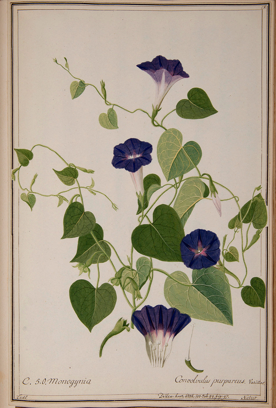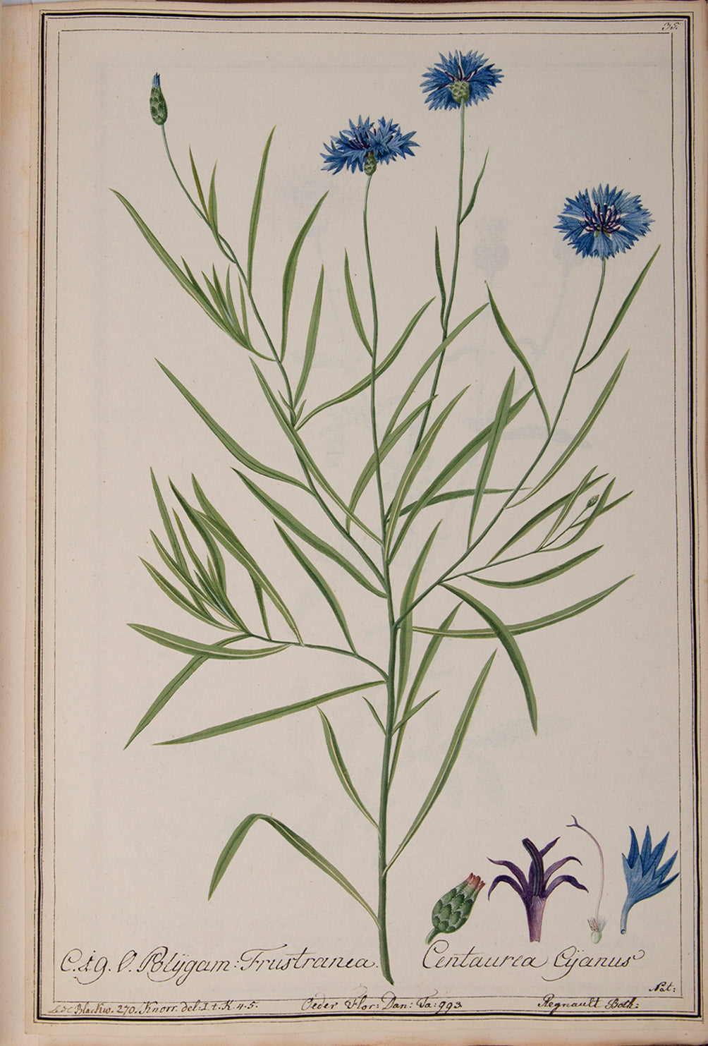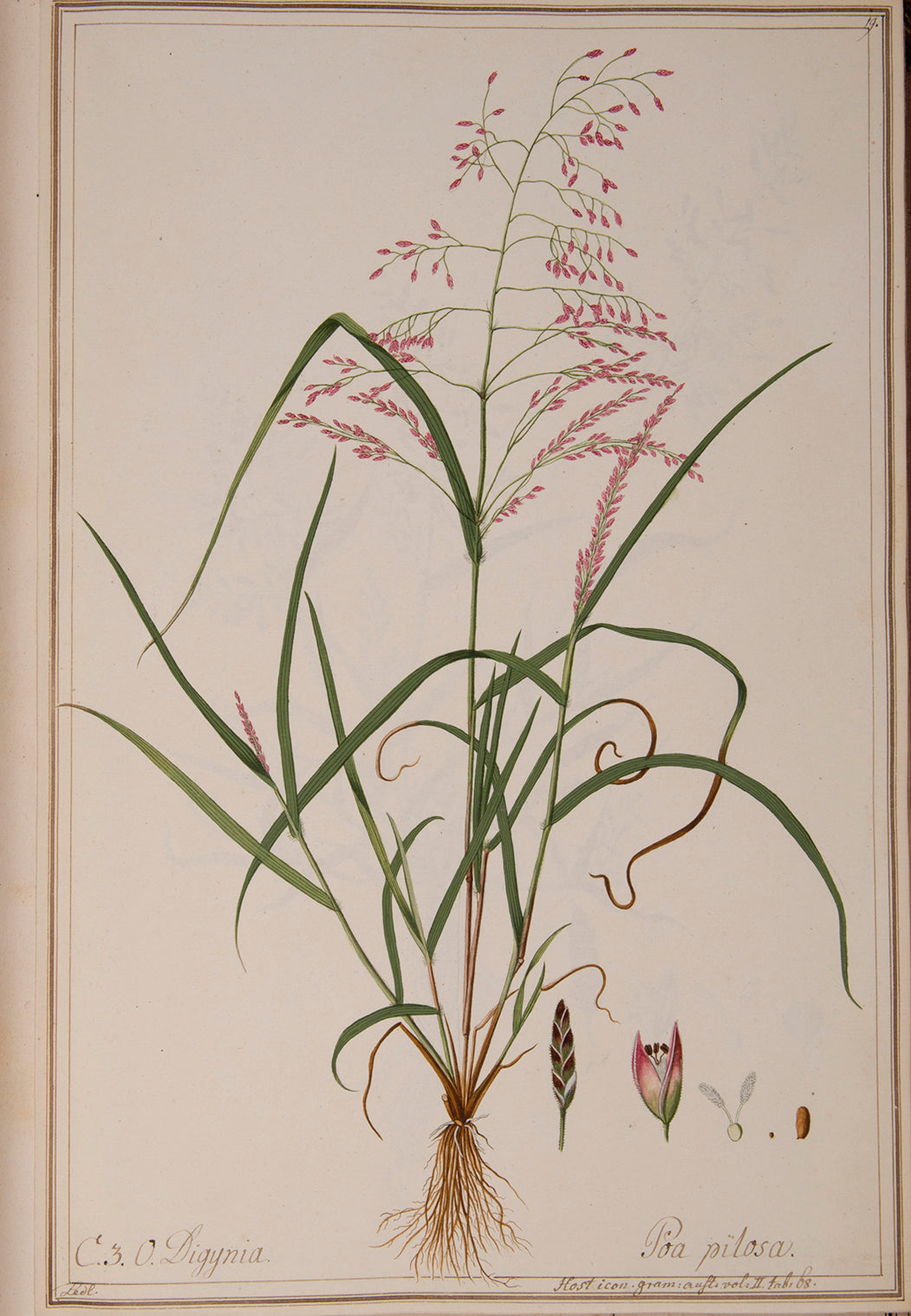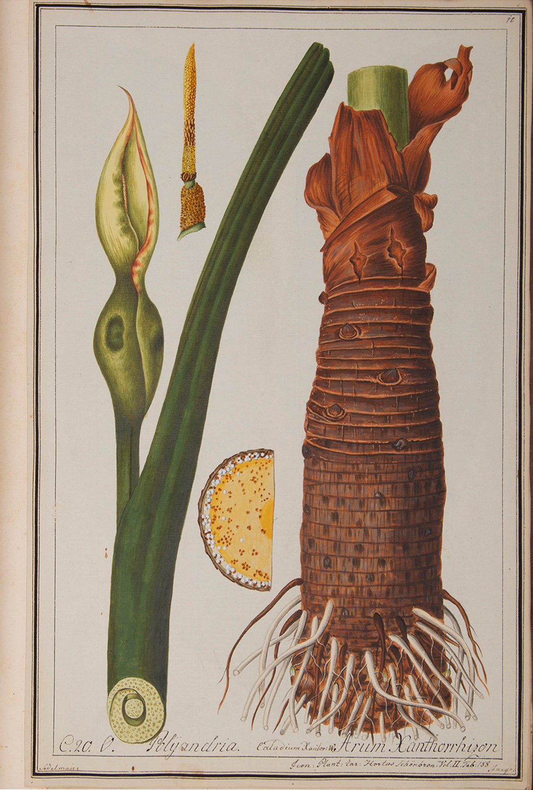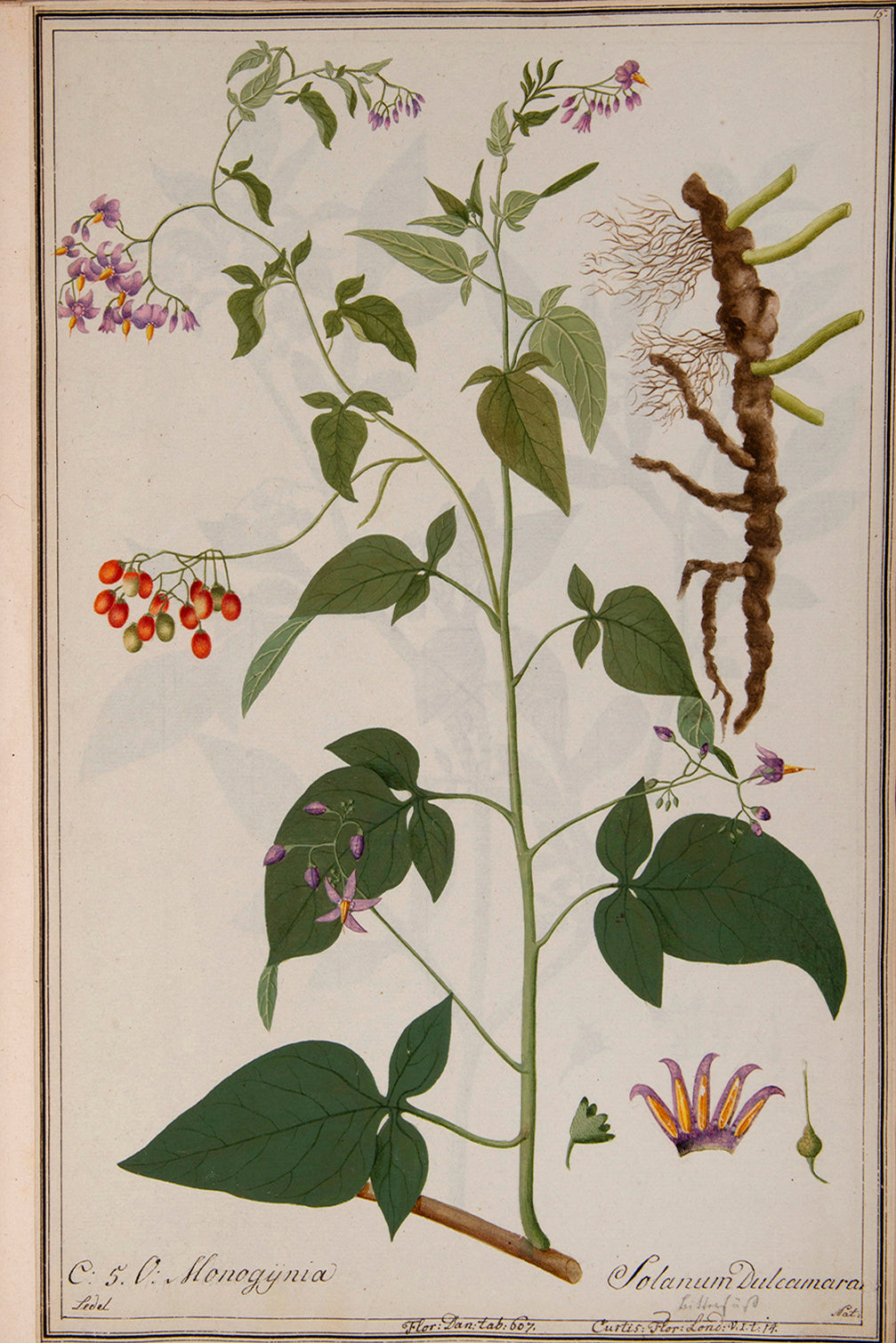 The bulk of the plates are taken from Jacquin's numerous works, in particular Icones plantarum rariores (1781-1793), Florae Austriacae (1773-1778) and Plantarum rariorum Horti Caesarei Schoenbrunnensis (1797-1804), along with Aiton's Hortus Kewensis (1789), Curtis's Botanical Magazine and Flora Londinensis, Oeder's Flora Danica, Scopoli's Deliciae florae et faunae insubricae (1786) and Cavanilles's Monadelphiae classis dissertationes decem (1790). Other significant botanical works are also mentioned, including Besler's Hortus Eystettensis, Rheede tot Drakenstein's Hortus Indicus Malabaricus, Roxburgh and Banks's works on the plants of Coromandel, Waldstein and Kitaibel's Descriptiones et icones plantarum rariorum Hungariae (1802-1812), and Pallas's Flora Rossica.