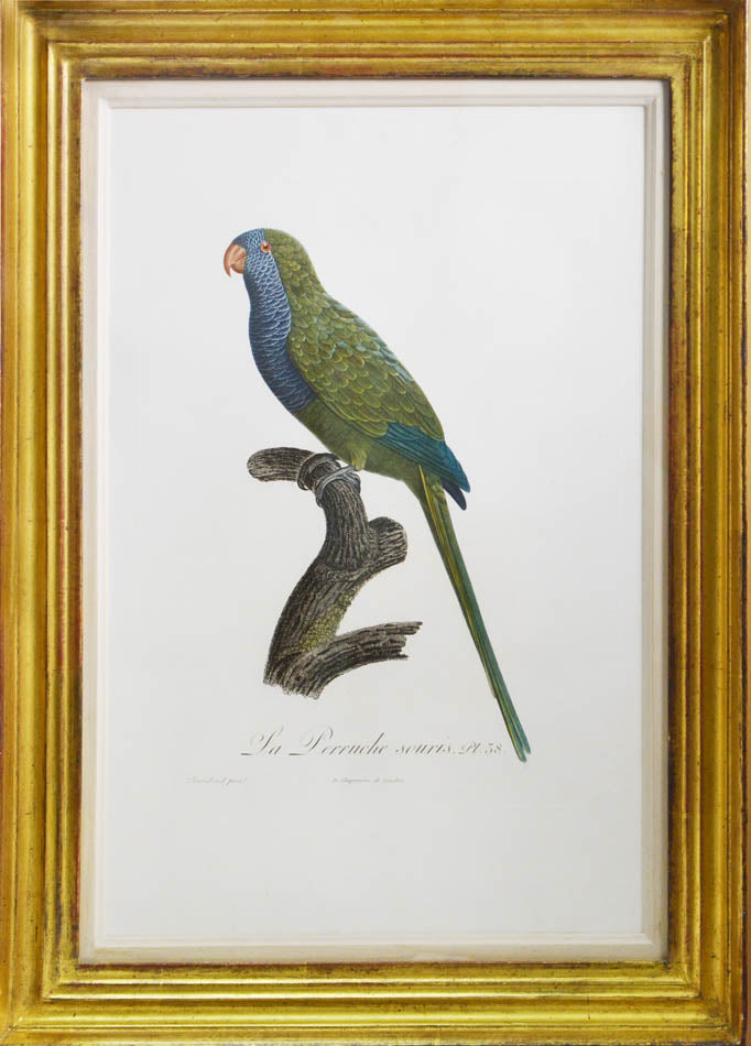 This exquisite monograph was written by Francois Levaillant, an adventurer and natural historian, who was one of the first to record sightings of Australian parrots. Barrband's skill was greatly esteemed and his name lent cachet to the sumptious work authored by Levaillant. Barraband's brilliantly colored engravings of exotic birds coupled with Levaillant's precise descriptions represent the height of realistic bird art.