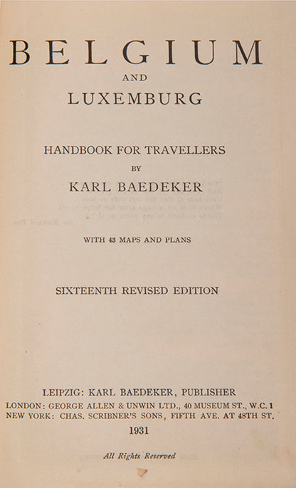 Sixteenth edition. xliv, 366pp, 43 maps and plans, previous owner's signature on endpapers; publisher's variant coarse grained red cloth gilt, spine slightly faded;overall a very good firm copy.