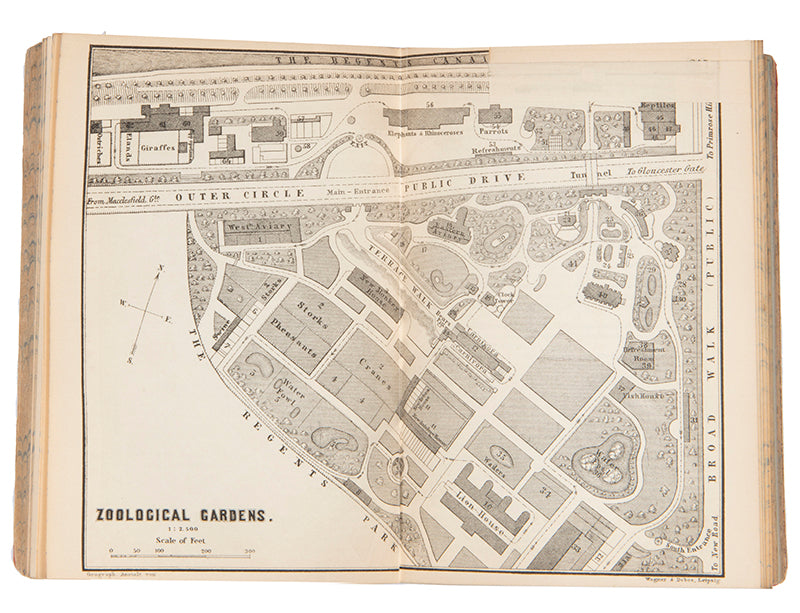 Second edition. vi, 354pp, 45pp street appendix, 4 maps and 15 plans, inner hinges slightly loose; publisher's original variant red cloth binding, slightly worn and partly split along spine, gilt lettering rubbed on spine; a good copy.