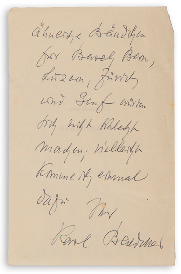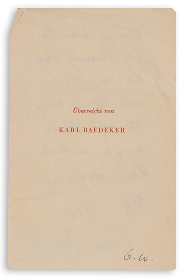 First edition; 40pp, one map, 5 floor plans, 14 sketches in text; publisher's red printed paperback covers, ink presentation from the publisher Karl Baedeker on inside front cover, publisher's presentation slip inserted loose with ink inscription on rear; a very good copy.