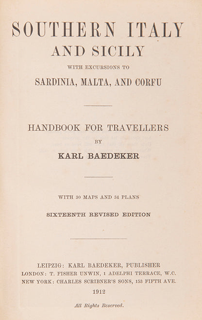 Sixteenth edition. lvi, 508pp, 30 maps and 34 plans; publisher's red cloth gilt, spine slightly faded; a very good copy
