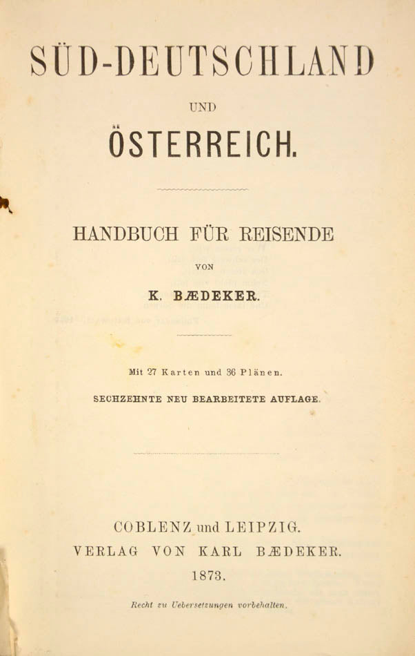 Sixteenth edition. xvi, 546pp, 27 maps, 36 plans, publisher's old type binding, red cloth gilt lettered; a near fine copy.