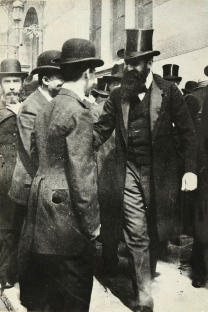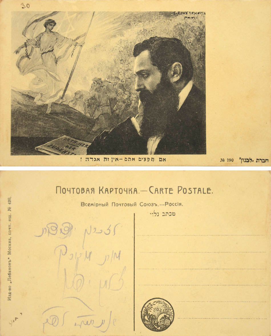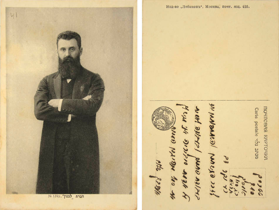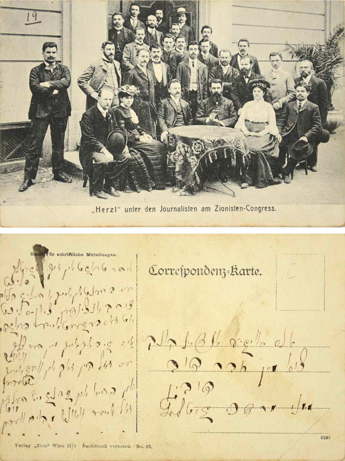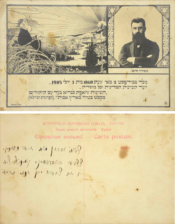 Album 1: 26 photographs and postcards of Herzl, his family and fellow Zionists.Album 2: Photographs, postcards, magazine clippings, 2 small brass reliefs showing Herzl, his family, the Zionist congresses and related scenes arranged in an album (65 items in total).