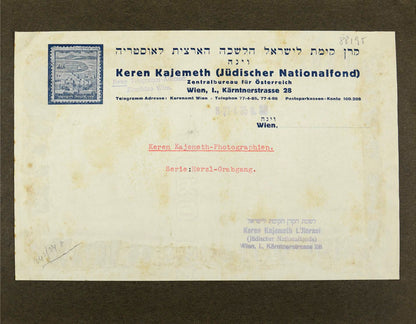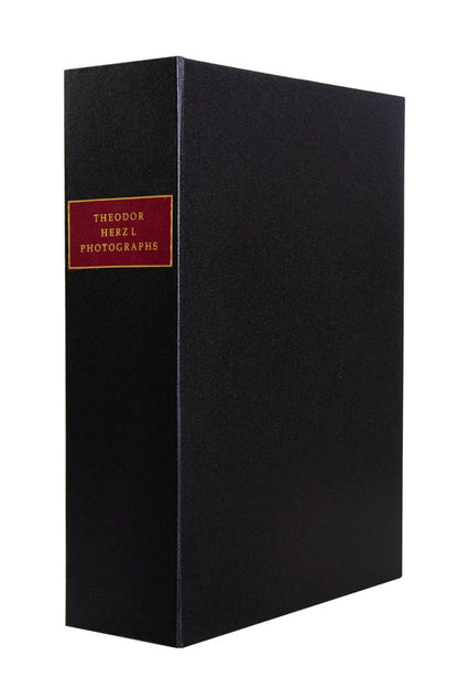 Vintage photographs pasted in three landscape photo albums, housed in a black solander box. Stationary with stamp of Karen Kajemeth LeIsrael Judischer Nationalfond/Jewish National Fund serves as title-page. 78 original black-and-white original photographs (mostly 135 x 85mm) arranged on 37 leaves, 'Photo Benedikt, Wien' embossed on most images.
