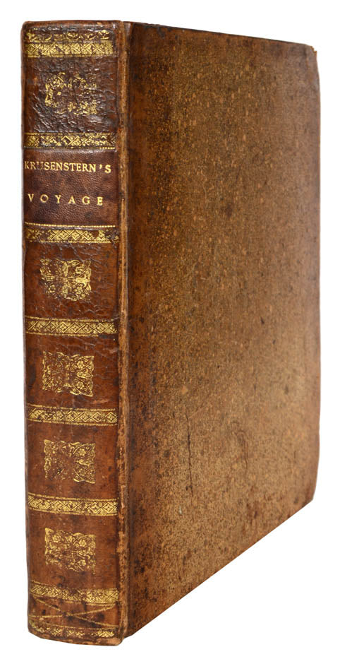 An important work, being the official account of the first Russian expedition to circumnavigate the globe. Kruzenstern had a particularly noteworthy group of officers serving under him, all of whom published records of the voyage: Lisianskii, Langsdorff, and Kotzebue. They were tasked with attempting to 'open relations with Nippon and the Sandwich Islands, to facilitate trade in South America, to examine California for a possible colony, and make a thorough study and report of the Northwest coast, its trade and its future' (Hill).Like many Russian naval personnel before him, Kruzenstern had trained in the British Navy. His service during the Revolutionary War (1793-1799) gave him a valuable insight into English trade with China and the East Indies. His introduction shows just how much he learnt whilst at Canton and provides 'important observations on the state of Russian commerce, Russian voyages and discoveries in the northern Pacific' (Forbes), as well as detailing his simple yet revolutionary ideas for the Russian fur trade.