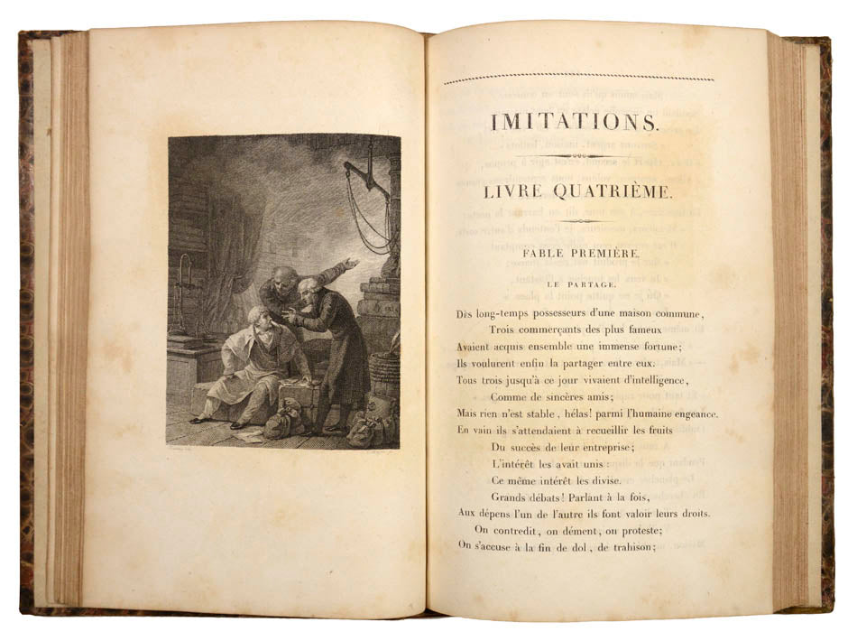 This edition stands out with its superb typographical production. Francois Didot, one of Paris's best typographers, ordered Cyrillic type especially for this publication. Illustrations of the fables were engraved by Sh. Beye and Ken. According to Vereshchagin 'the book is rare', since most copies were sold in Paris following its publication and very few were actually brought to Russia.