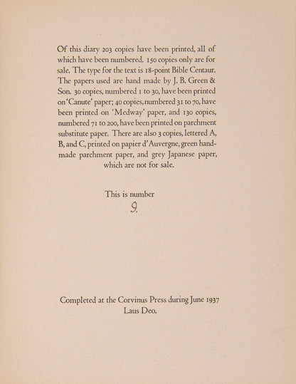 First edition, number 9 of 30 copies on Canute paper of an edition limited to 203 copies (150 for sale); 4to; illustrated with 13 photographs taken by the author; publisher's brown morocco, spine and upper cover lettered in gilt, pictorial gilt vignette of bird with worm in beak to lower cover, top edge gilt others uncut, upper joint lightly rubbed, a very good example.