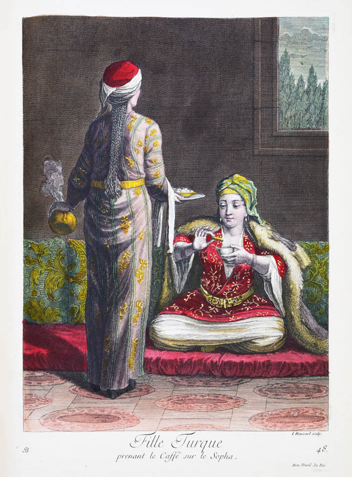 Van Mour's paintings (and the plates that derive from them) show Istanbul as a cosmopolitan place with Muslims and non-Muslims uniting in shared 'Ottoman' pleasures. Armenians, Franks, Greeks and Persians are shown drinking coffee, playing mankeh (a version of backgammon), or making music.