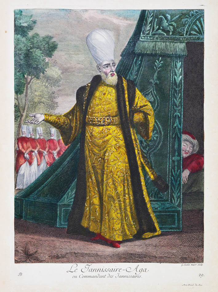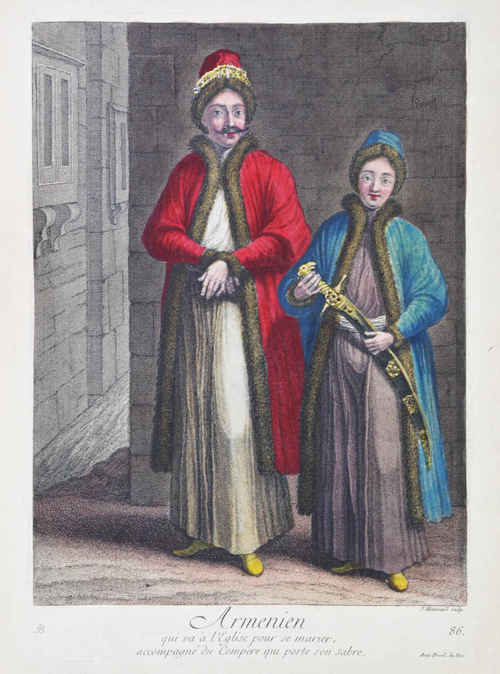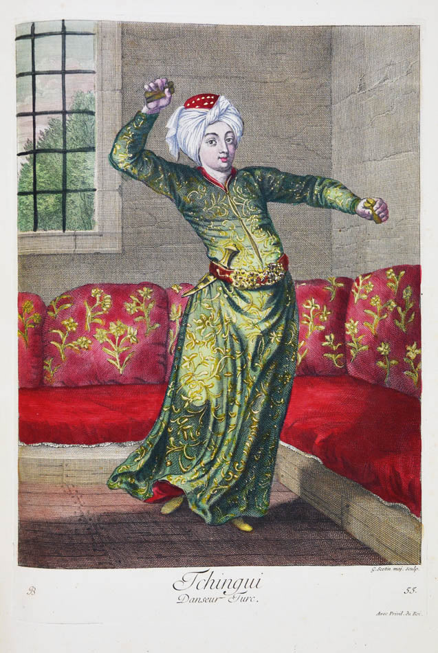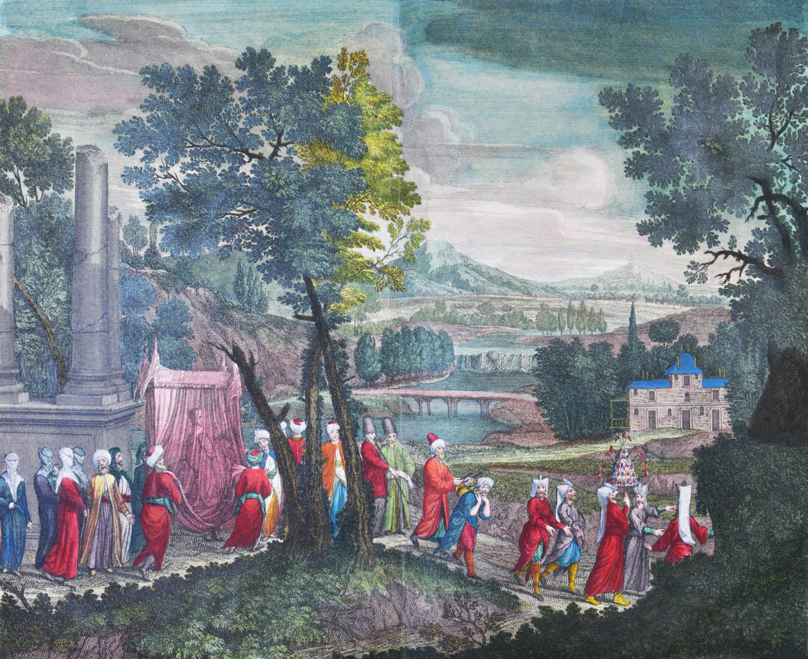 The plates for this work were commissioned by Charles de Ferriol (1652-1722), the French Ambassador to the Porte between 1699 and 1709. The plates were engraved after drawings by the Flemish artist J.B. van Mour, who lived and worked in Istanbul for many years during the first part of the eighteenth century. It has been suggested that van Mour came to Istanbul with the entourage of Ferriol in 1699. When the paintings were complete, Ferriol helped Le Hay to publish the present prints of the pictures. Le Hay's work was an instant success and the plates quickly became the principal source of turqueries for artists and publishers throughout Europe. In recognition of van Mour's talents, he was granted the unique post of 'Peintre ordinaire du Roi en Levant' in 1725.