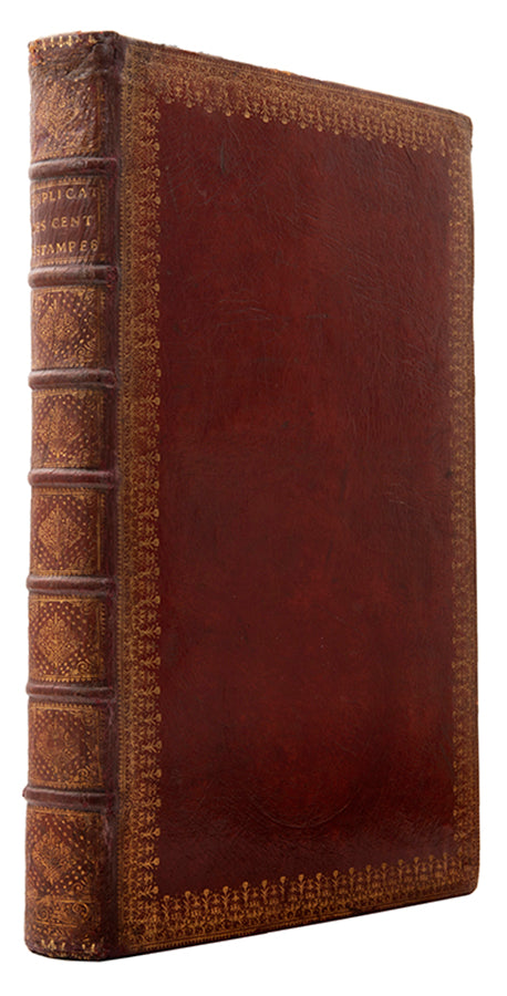 Folio (49 x 33 cm approx.), engraved throughout, comprising: title with preface by Cars on verso, 'Anecdotes' (pp.I-II), 'Explication des figures' (pp.III-XIV), leaf of music (printed recto only), and 102 engraved plates (3 double-page), all with fine contemporary hand-colouring, 30 plates heightened with gold and mica; full contemporary French red morocco, boards & spine richly tooled in gilt, with superb floriated endpapers; some restoration to extremities of spine; a particularly fine example.